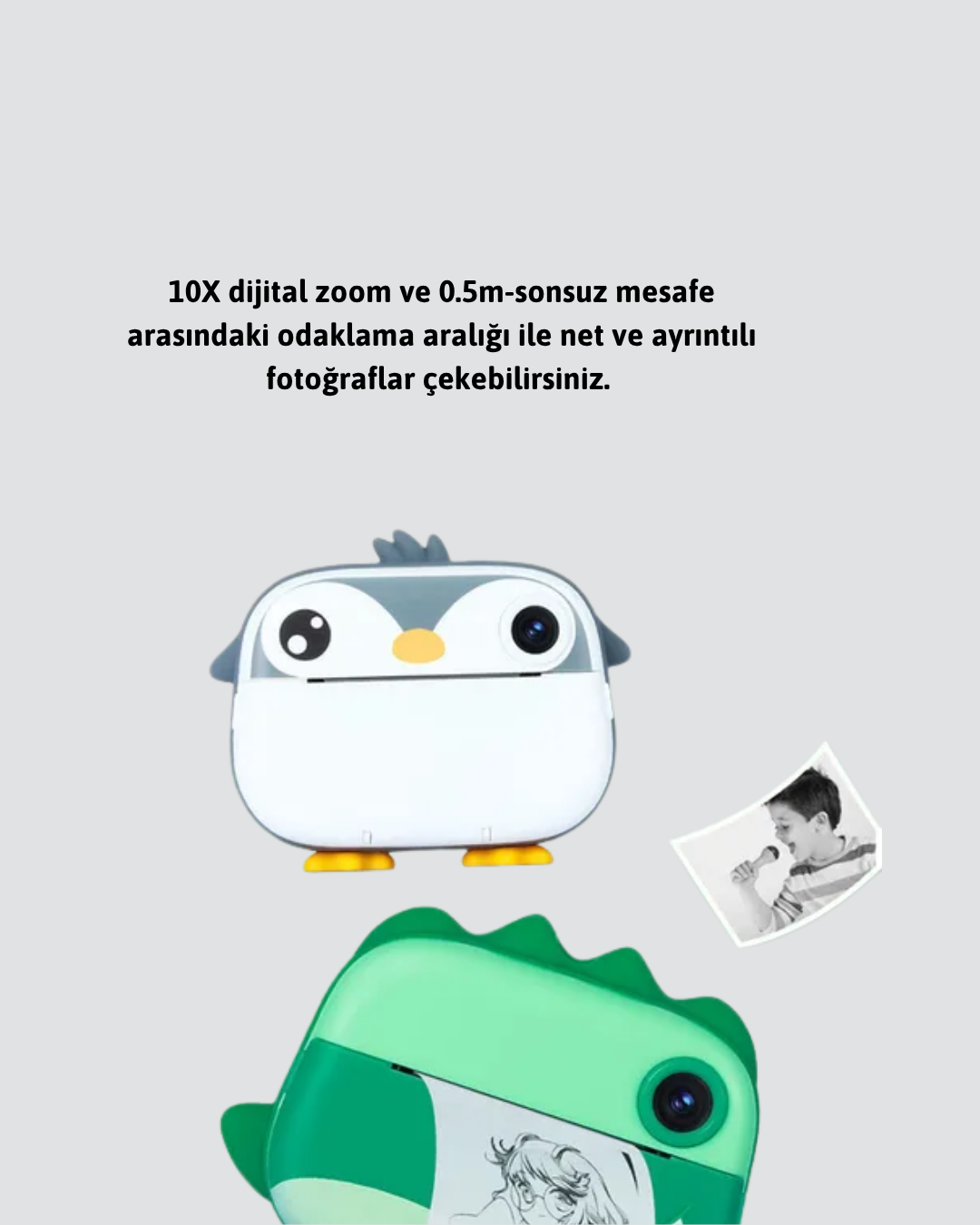 baskı kamera, 12 farklı özel efekt seçeneği sunarak fotoğraflarınıza yaratıcı dokunuşlar eklemenize olanak tanır. Siyah-beyaz, sepya, retro ve diğer efektlerle her kareyi farklı bir atmosfere taşıyabilirsiniz.Self-timer fonksiyonları (2 saniye, 5 saniye, 10 saniye) sayesinde grup fotoğrafları ve selfie çekimleri çok daha kolay ve pratik hale gelir. Arkadaşlarınızla ya da ailenizle mükemmel kareler yakalayabilirsiniz.Kullanımı kolay menü ve ergonomik tuş yapısı, her seviyeden kullanıcı için uygundur. Baskı özelliği ile çektiğiniz fotoğrafları anında elde edebilir, özel anılarınızı hemen paylaşabilirsiniz.