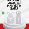 MagSafe uyumlu araç tutucu, günlük kullanımda pratikliği, seyahatlerde ise güvenliği ön plana çıkarır. 15W hızlı şarj desteğiyle cihazınızı kısa sürede şarj ederken kablosuz teknolojisi sayesinde kablo karmaşasından kurtulmanızı sağlar. Type-C girişli yapısı, yüksek verimlilikle enerji aktarımı yapar. Güçlü manyetik yüzeyi sayesinde telefonunuzu yalnızca üzerine bırakmanız yeterlidir, anında sabitlenir. 360° dönebilen başlığı sayesinde cihazınızı hem yatay hem de dikey kullanabilirsiniz. Akıllı güvenlik çipi, şarj sürecini optimize ederek telefonunuzu aşırı ısınma, kısa devre ve voltaj dalgalanmalarına karşı korur. Aracınızın havalandırma ızgarasına monte edilen sağlam klipsi sayesinde sarsıntısız kullanım sunar. Tek elle kolay kullanım özelliği, direksiyon başında güvenliği korurken pratiklik sağlar. iPhone 12, 13 ve 14 serileriyle tam uyumlu olan cihaz, MagSafe kılıflarla da sorunsuz çalışır. Kompakt ölçüleriyle araç içinde fazla yer kaplamazken, modern ve şık tasarımıyla aracınızın iç dekorasyonuna uyum sağlar. Uzun yolculuklarda telefonunuzu güvenli, hızlı ve kolay şekilde şarj ederek size eşlik eden vazgeçilmez bir yardımcıdır.