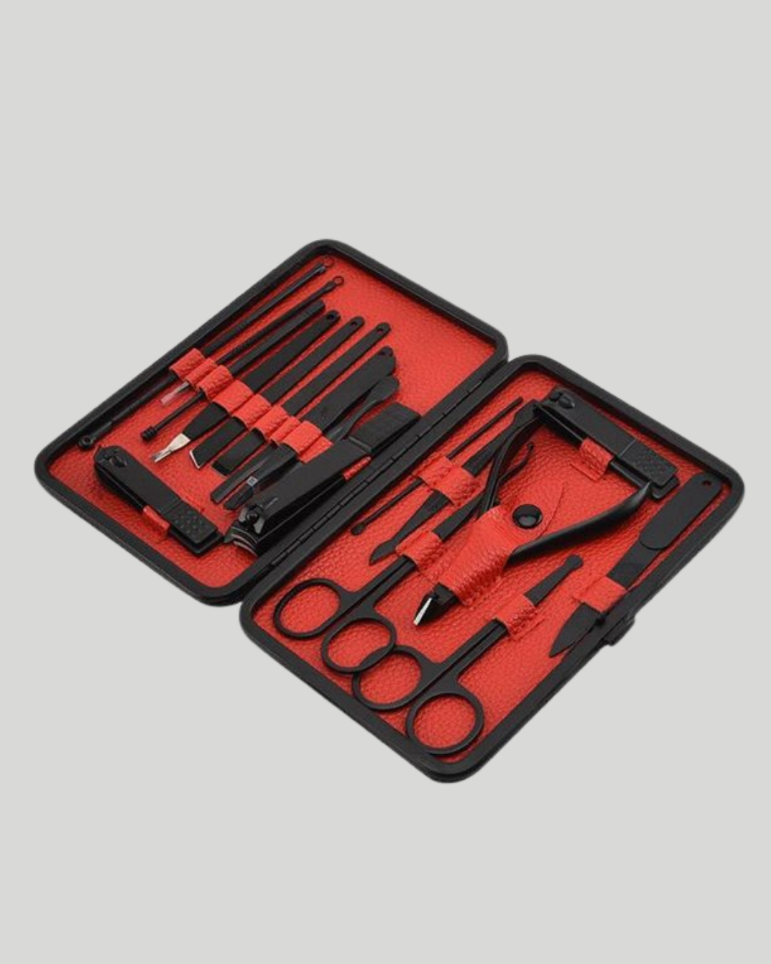 17 Parça Profesyonel Manikür Pedikür Seti Paslanmaz Çelik Siyah Kutu