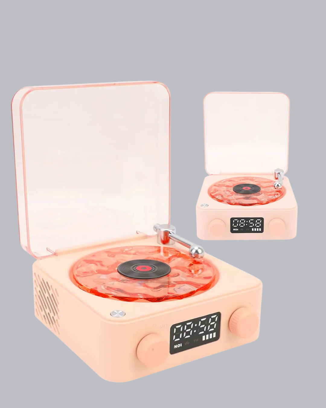 3-ü-1 Gece Işığı Bluetooth Hoparlör ve Dijital Saat Vintage Plak Çalar Tasarımlı