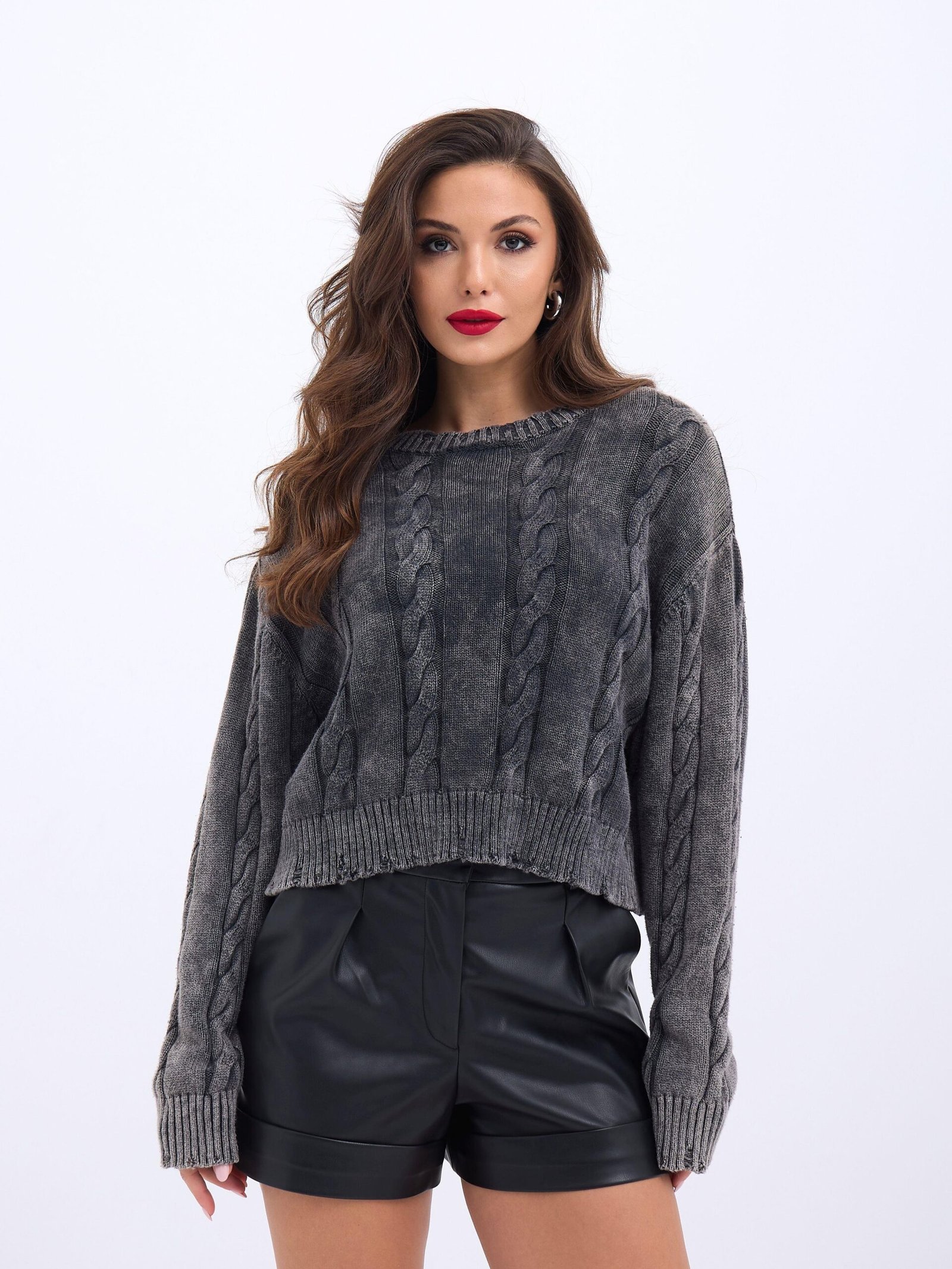 43331 TRİKO SAÇ ÖRGÜ KAZAK-ANTRASİT