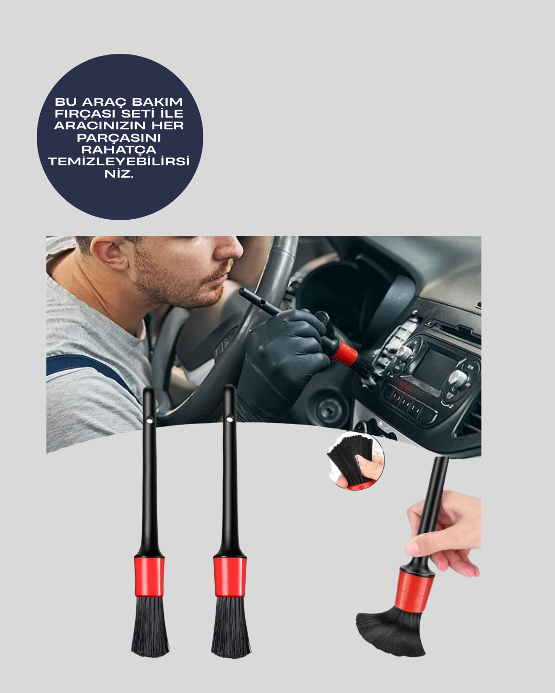 Bu araç bakım fırçası seti, araç temizliğinde ulaşılması zor bölgeleri kolayca temizlemenize yardımcı olur. Set içerisinde yer alan 5 farklı boyuttaki fırça, hem iç hem dış temizlikte etkili olacak şekilde tasarlanmıştır. Dar alanlar, havalandırma kanalları, jant araları, logolar gibi detaylı yüzeylerde kullanıma uygundur.Fırçalar, yumuşak yaban domuzu kılı ve sentetik lif karışımı ile üretilmiş olup, hassas yüzeylerde çizik bırakmadan güvenle kullanılabilir. Deri koltuklar, plastik parçalar ve metal yüzeylerde yüksek temizlik sağlar.Ürünlerin sap kısmında yer alan askı delikleri, garajda veya araç içinde düzenli şekilde saklama imkânı sunar. Böylece hem yerden tasarruf sağlanır hem de dağınıklık önlenir. Set, tüm binek araçlar, SUV’lar, motosikletler ve ticari araçlarla uyumludur.
