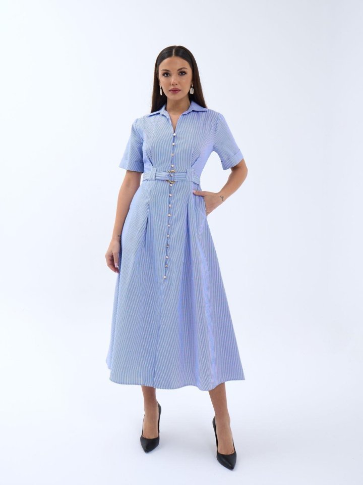 6948 ELBİSE-MAVİ BEYAZ ÇİZGİLİ