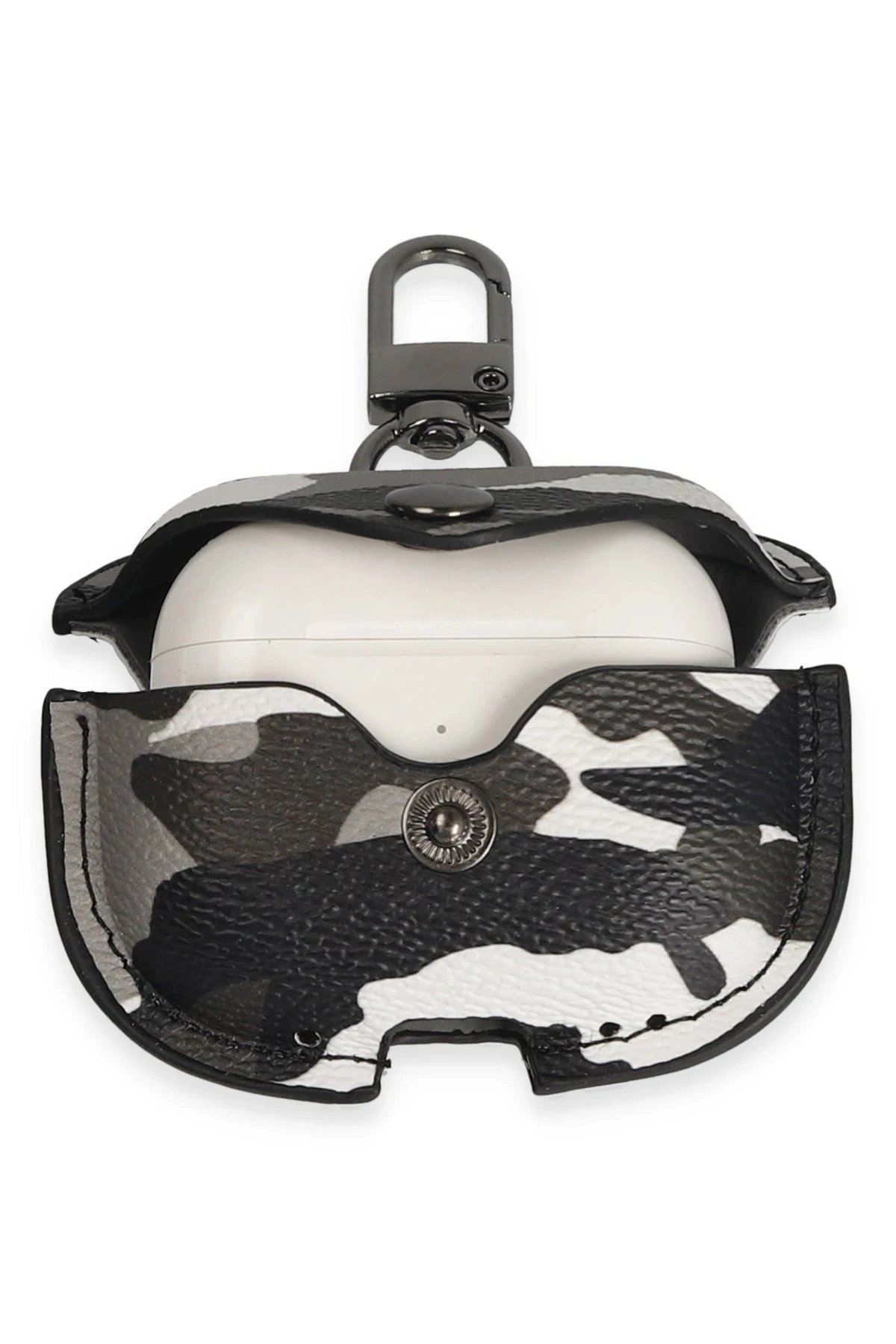 Airpods 3 (3.nesil) Çanta Kamuflaj Deri Kılıf – Gri-(5796)