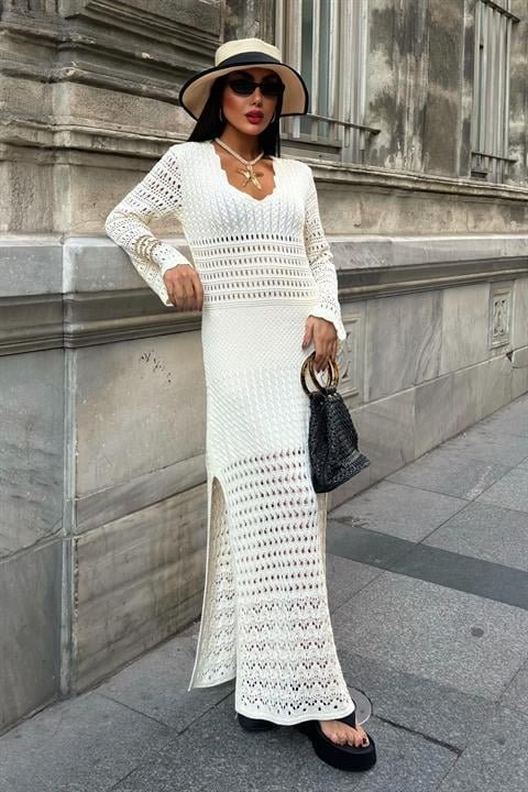 Ajur Detaylı İspanyol Kol Elbise 2840