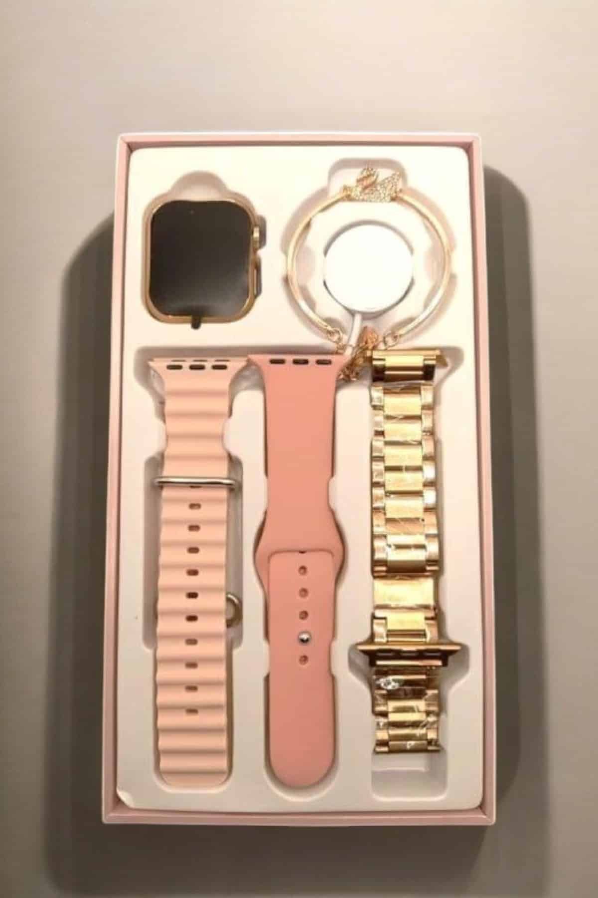Şıklığı ve işlevselliği bir araya getiren bu akıllı saat, aksesuar severler için üç farklı kordon seçeneği ve zarif bir flamingo Bileklik ve yüzük hediyesiyle birlikte gelir. Kordon seçenekleri arasında çelik metal, ocean tasarım ve silikon malzeme yer alır; böylece saatinizi günlük tarzınıza veya etkinliğinize göre uyarlayabilirsiniz. Hediye kolye, şık bir dokunuş ekler ve bu ürünü sadece teknolojik bir cihaz değil, aynı zamanda zarif bir aksesuar haline getirir. Saatin kapsamlı özellikleri ve kullanıcıya sunduğu hediyeler, hem fonksiyonel hem de estetik bir deneyim sunar.