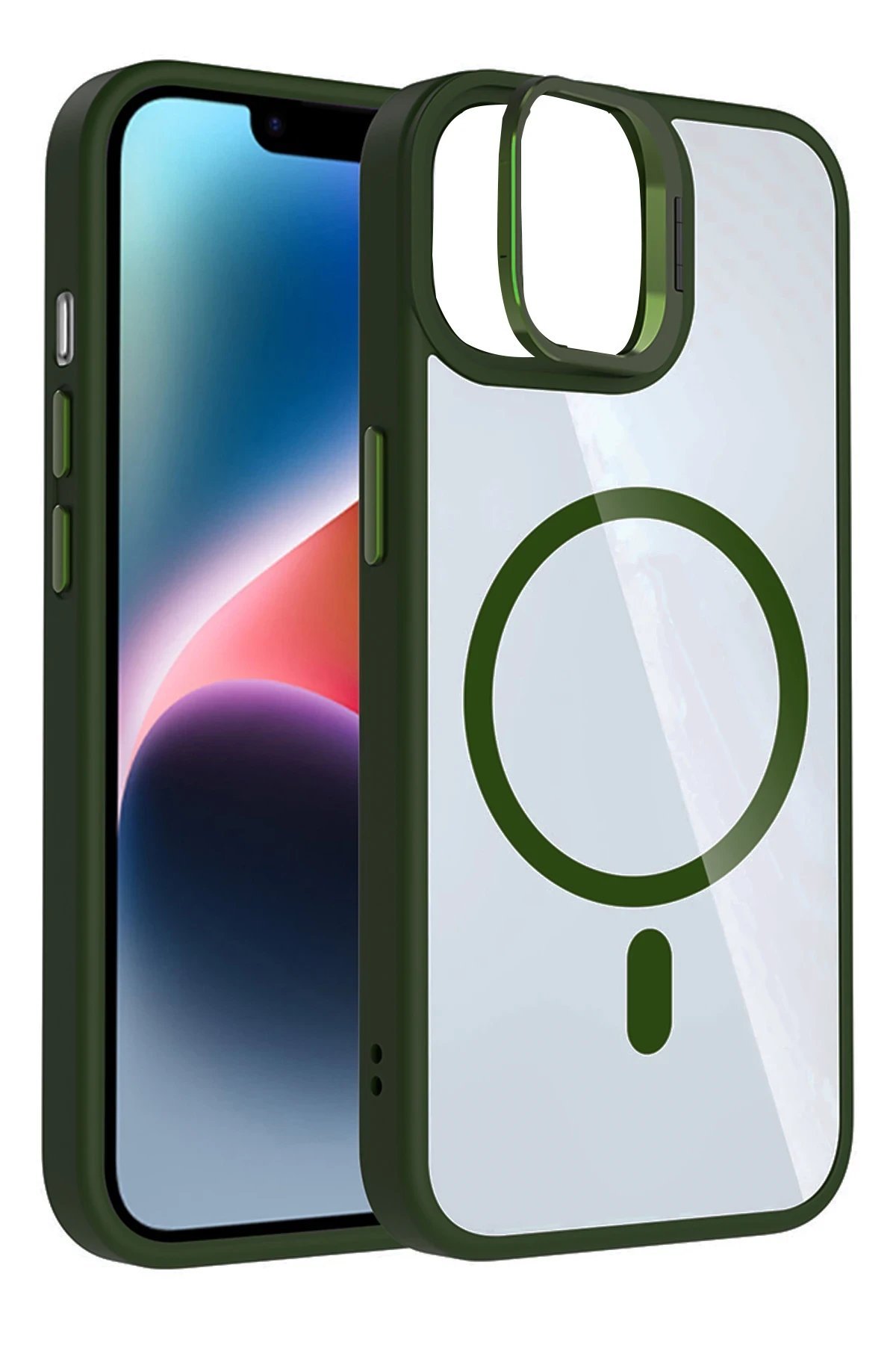 Apple iPhone 11 Remim Lensli Magsafe Standlı Kapak – Koyu Yeşil-(5796)
