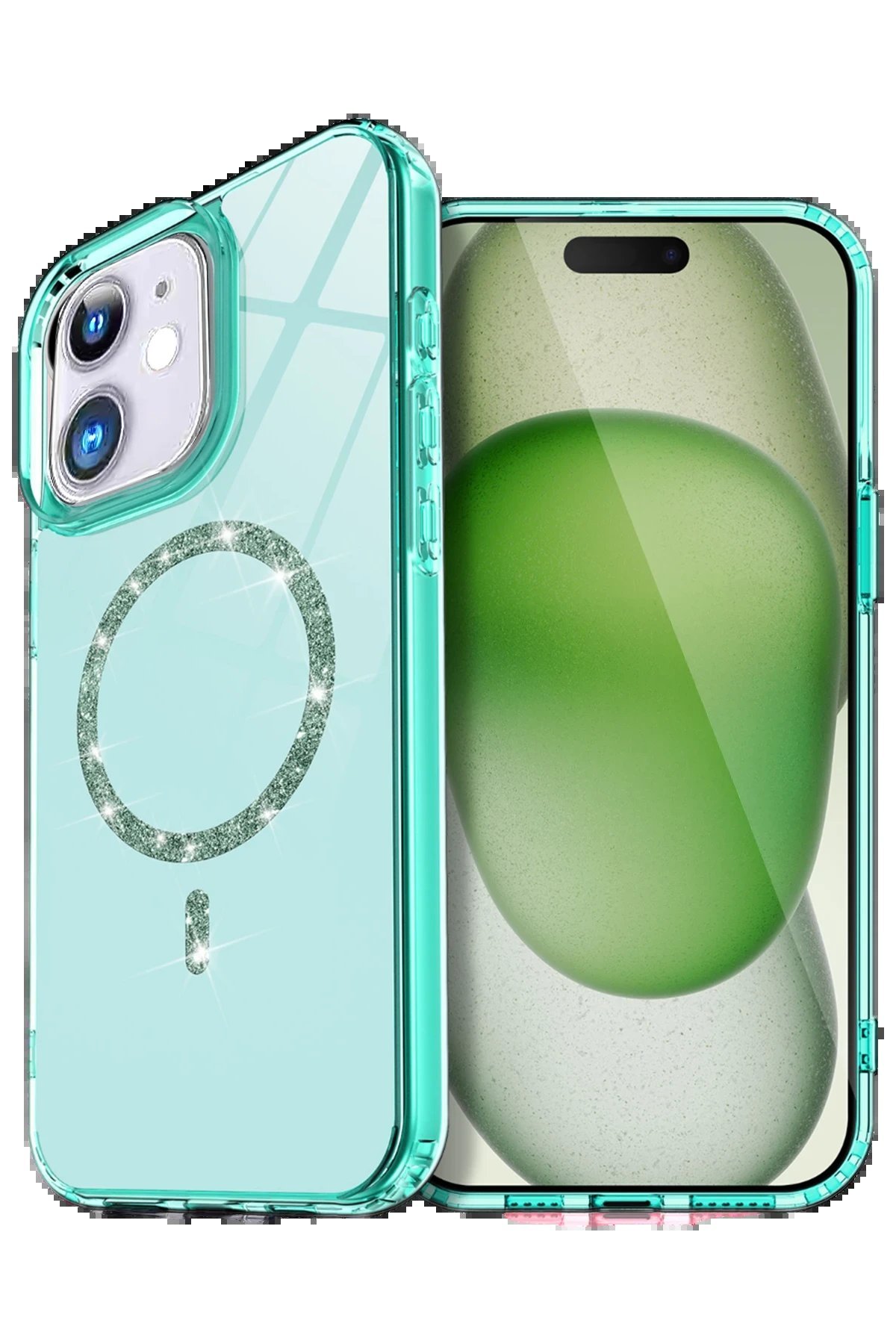 Apple iPhone 12 Live Diamond Magsafe Kapak – Yeşil-(5796)