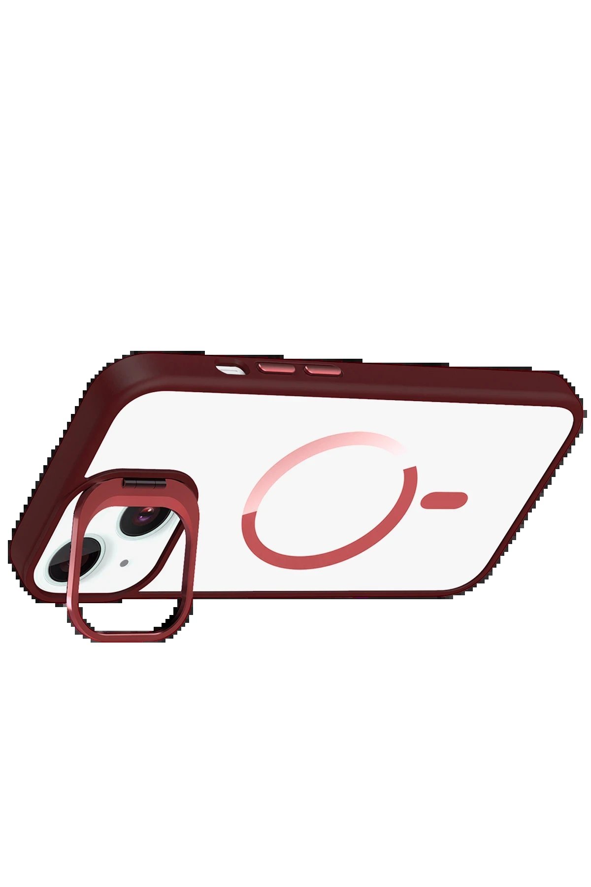 Apple iPhone 13 Remim Lensli Magsafe Standlı Kapak – Bordo-(5796)