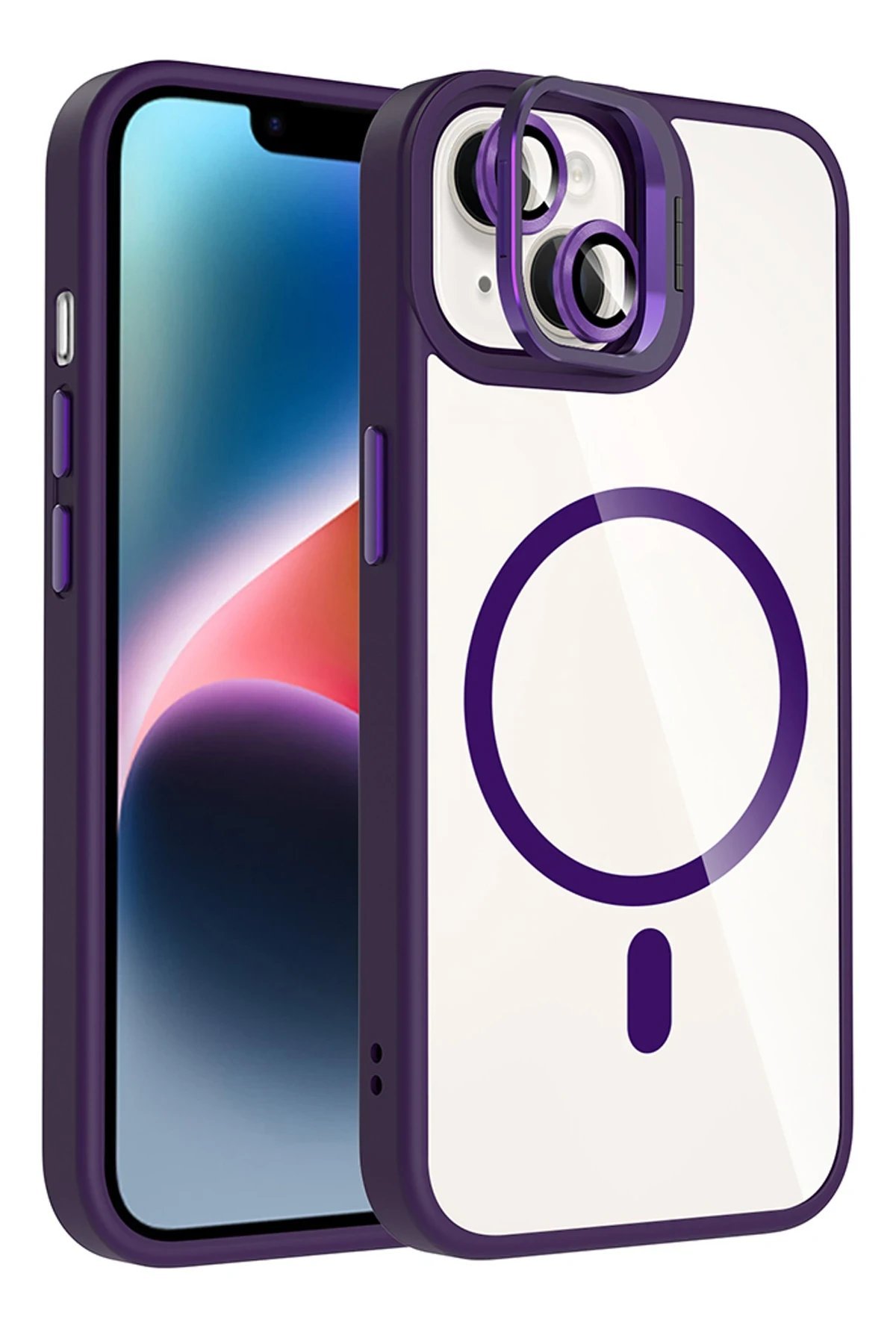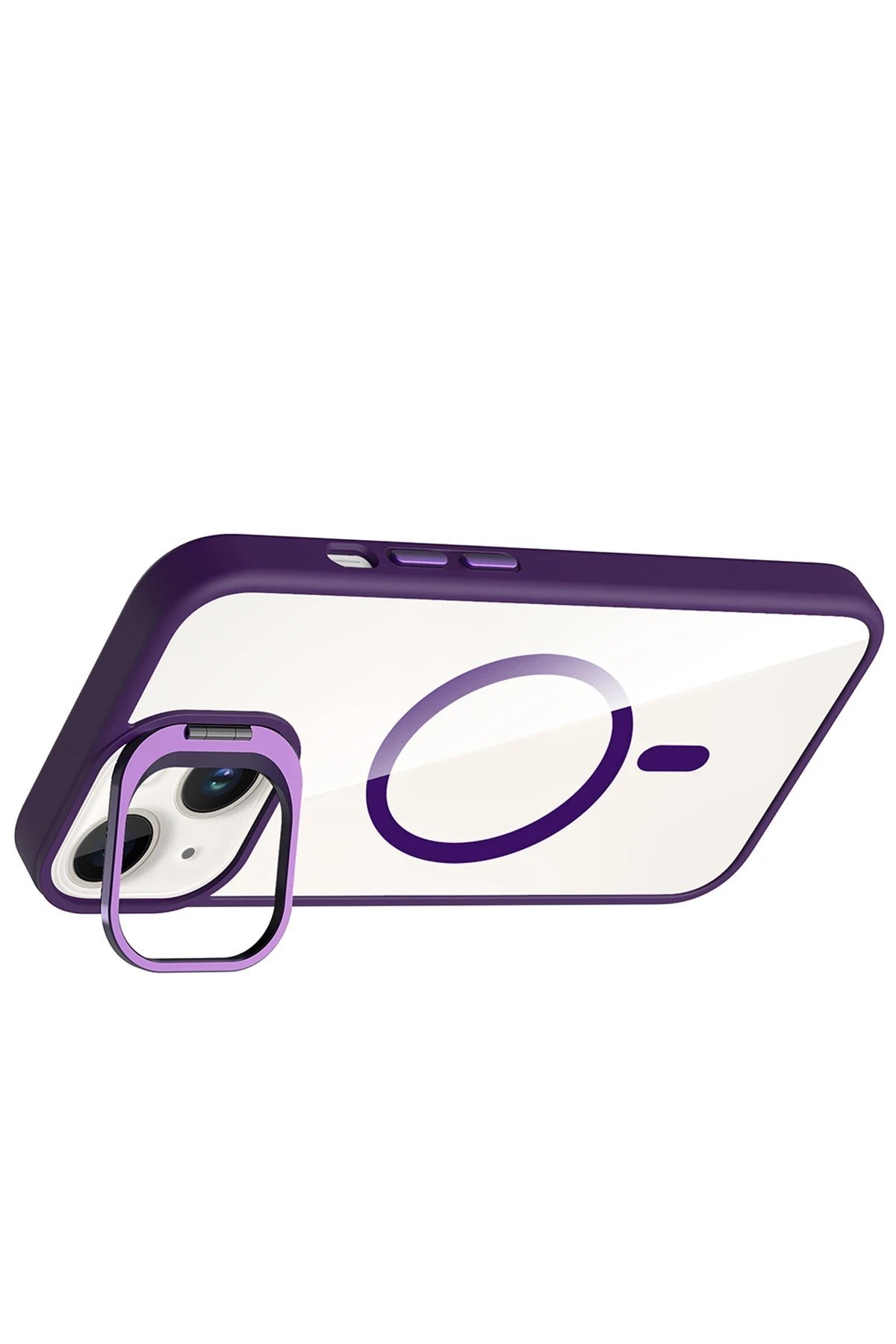 Apple iPhone 13 Remim Lensli Magsafe Standlı Kapak – Derin Mor-(5796)
