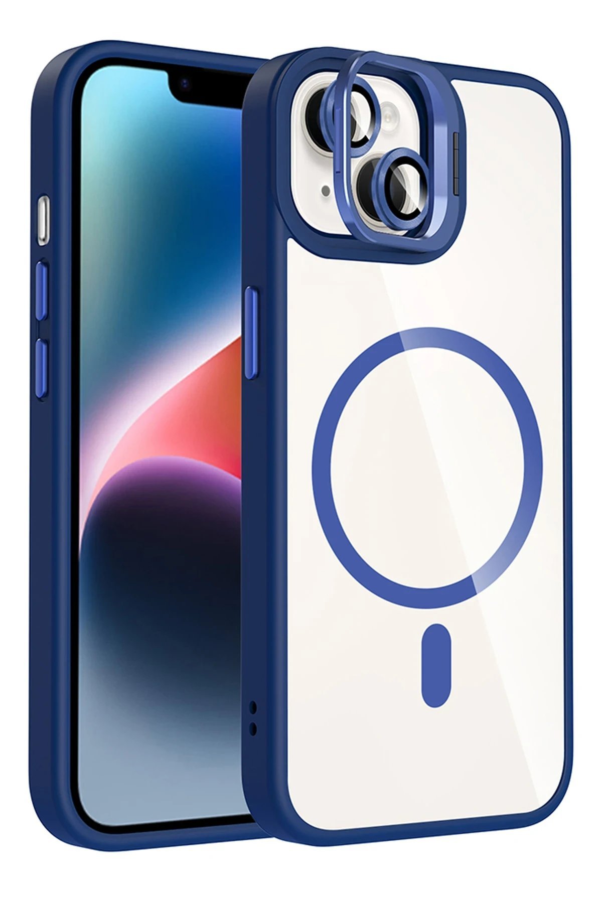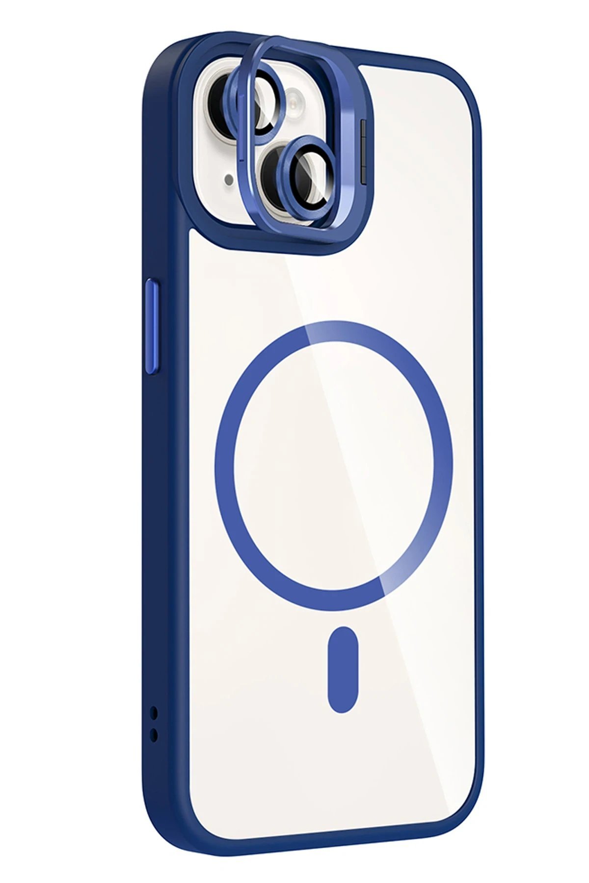Apple iPhone 13 Remim Lensli Magsafe Standlı Kapak - Lacivert-(5796)