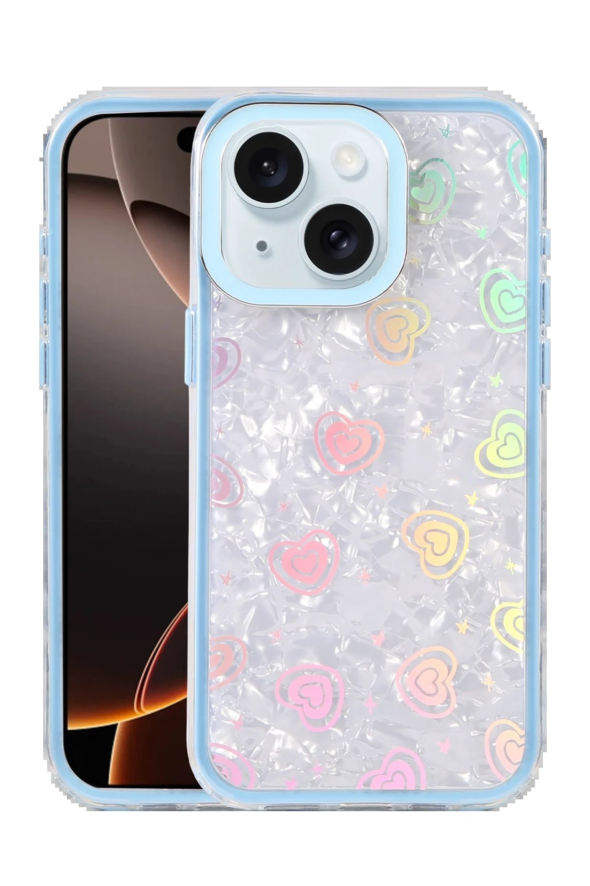 ✅ Kristal şeffaf tasarımı ve renkli kalp desenleriyle şık bir görünüm sunar.