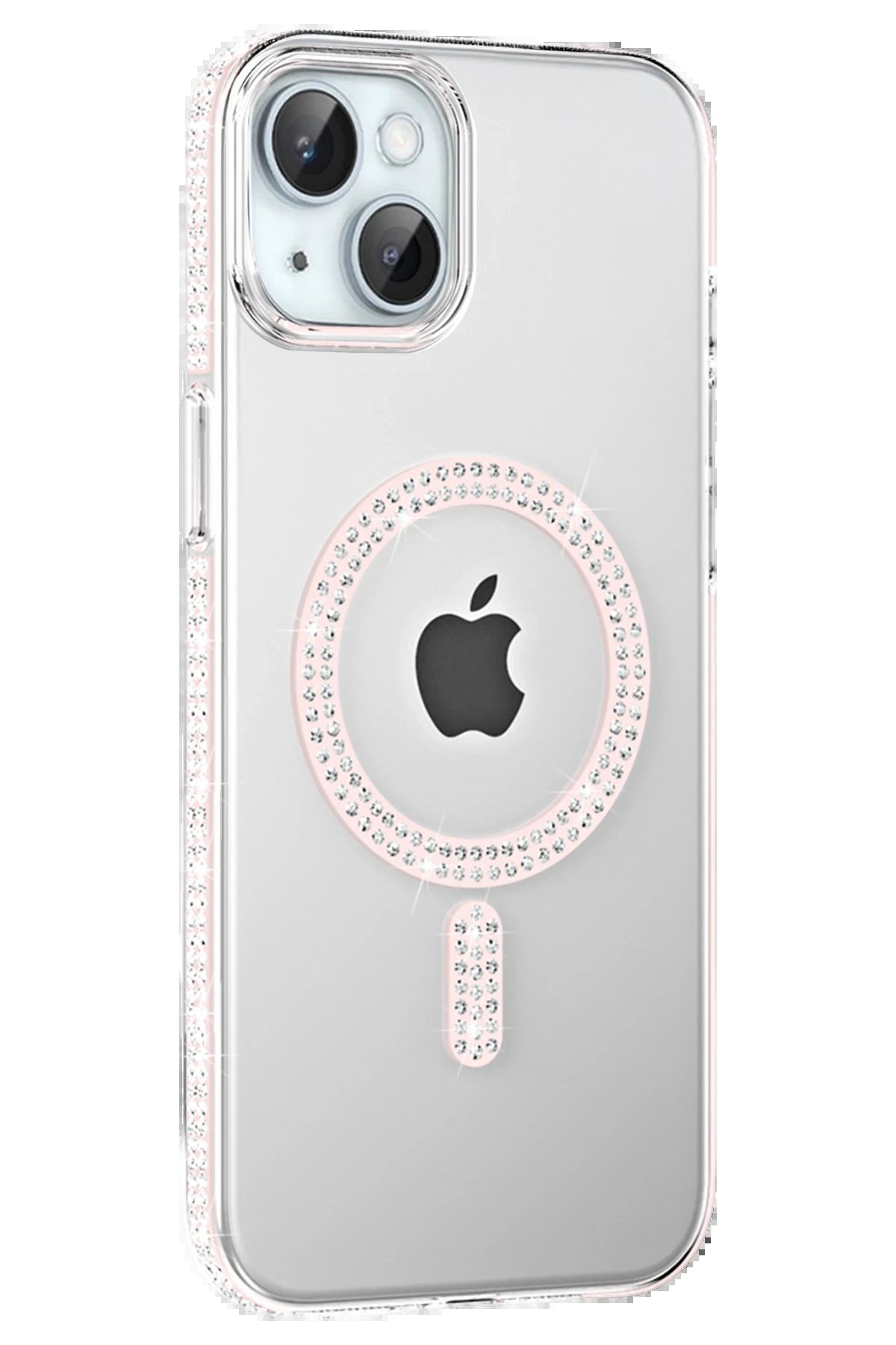 Apple iPhone 14 Move Taşlı Magsafe Kapak – Gümüş-(5796)