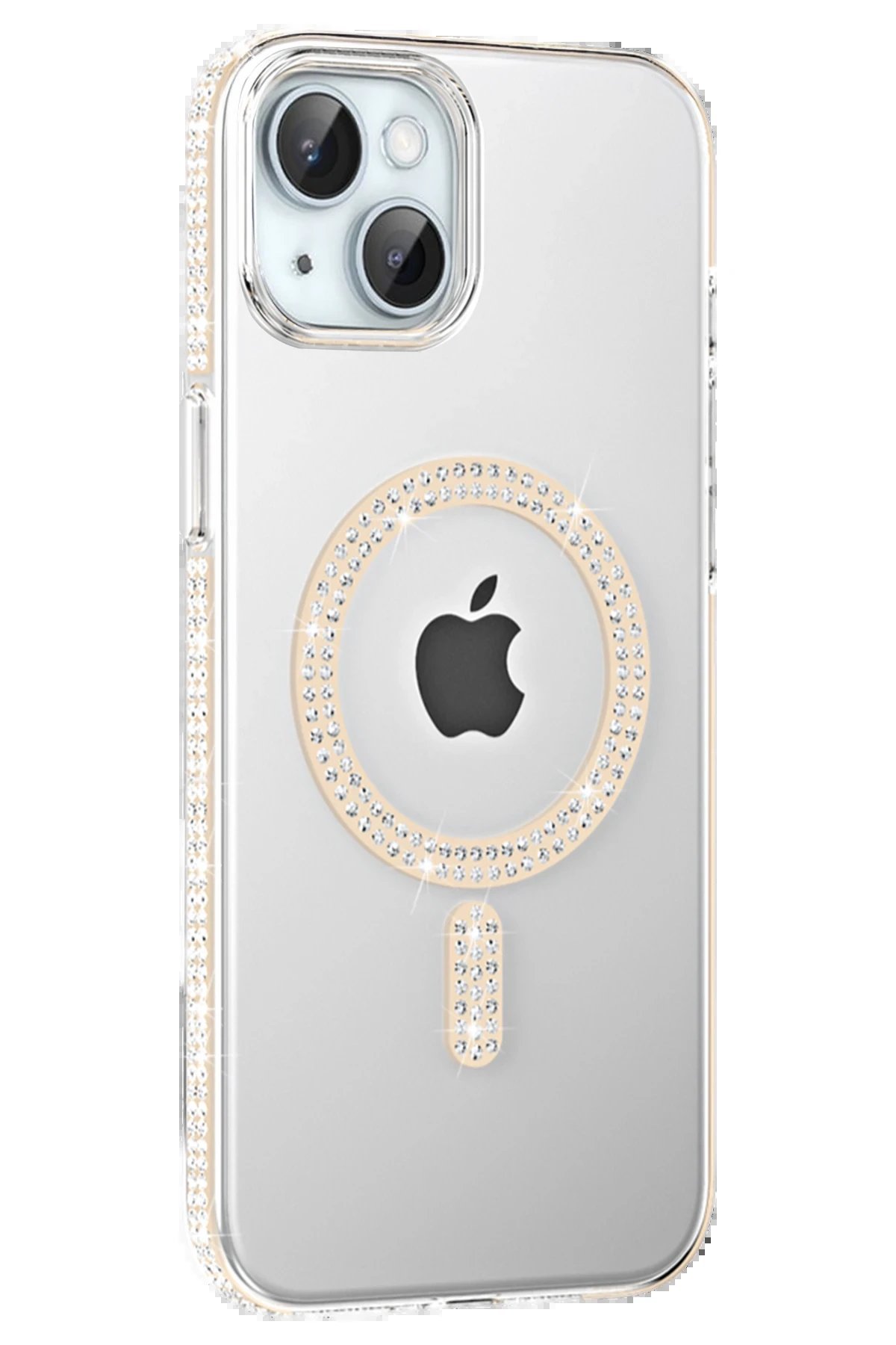 Apple iPhone 14 Move Taşlı Magsafe Kapak - Pembe-(5796)