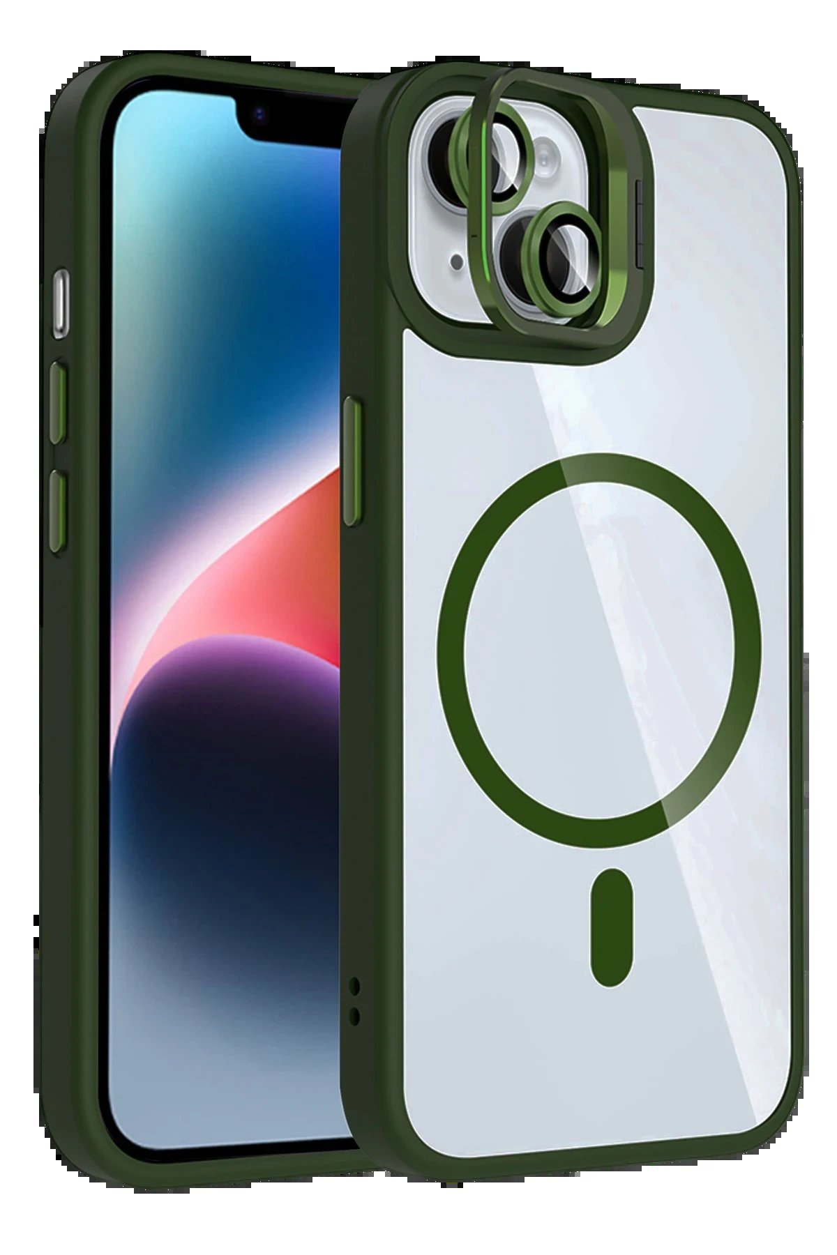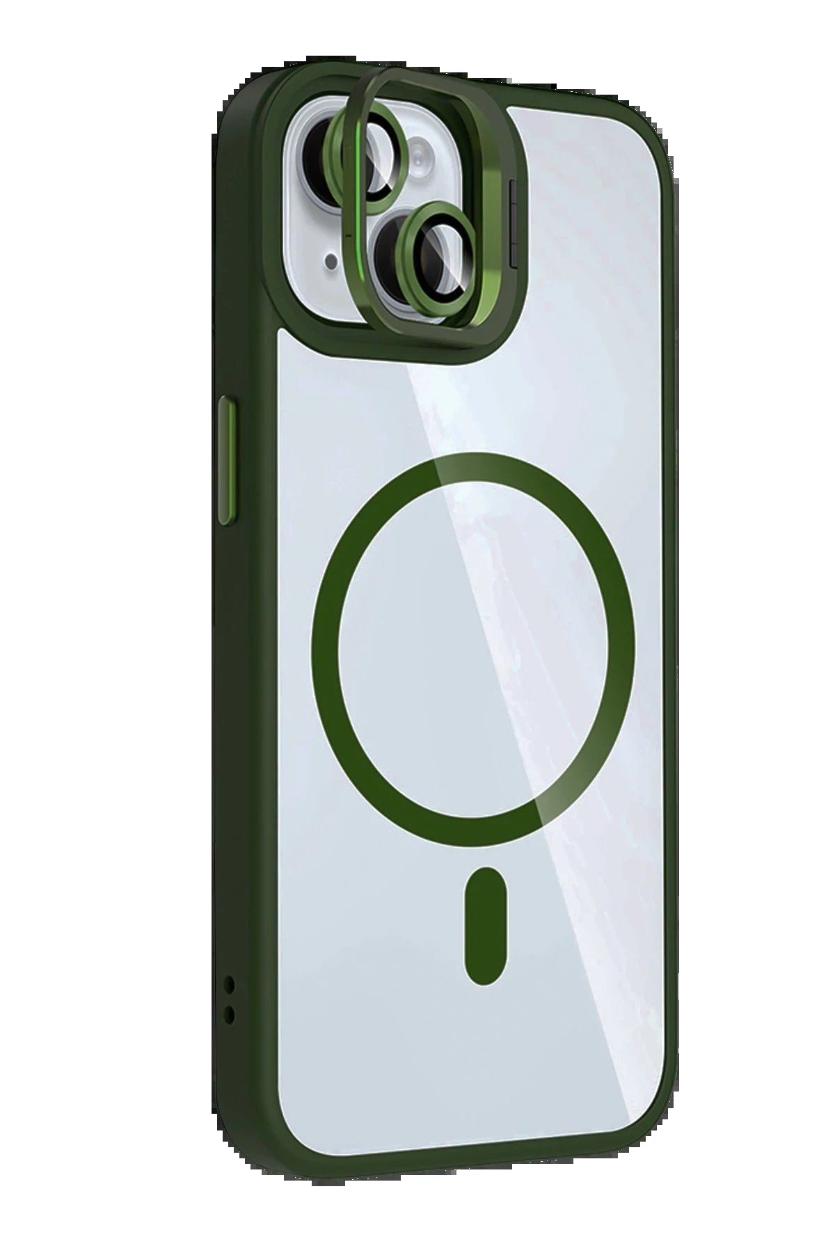 Apple iPhone 14 Remim Lensli Magsafe Standlı Kapak – Koyu Yeşil-(5796)
