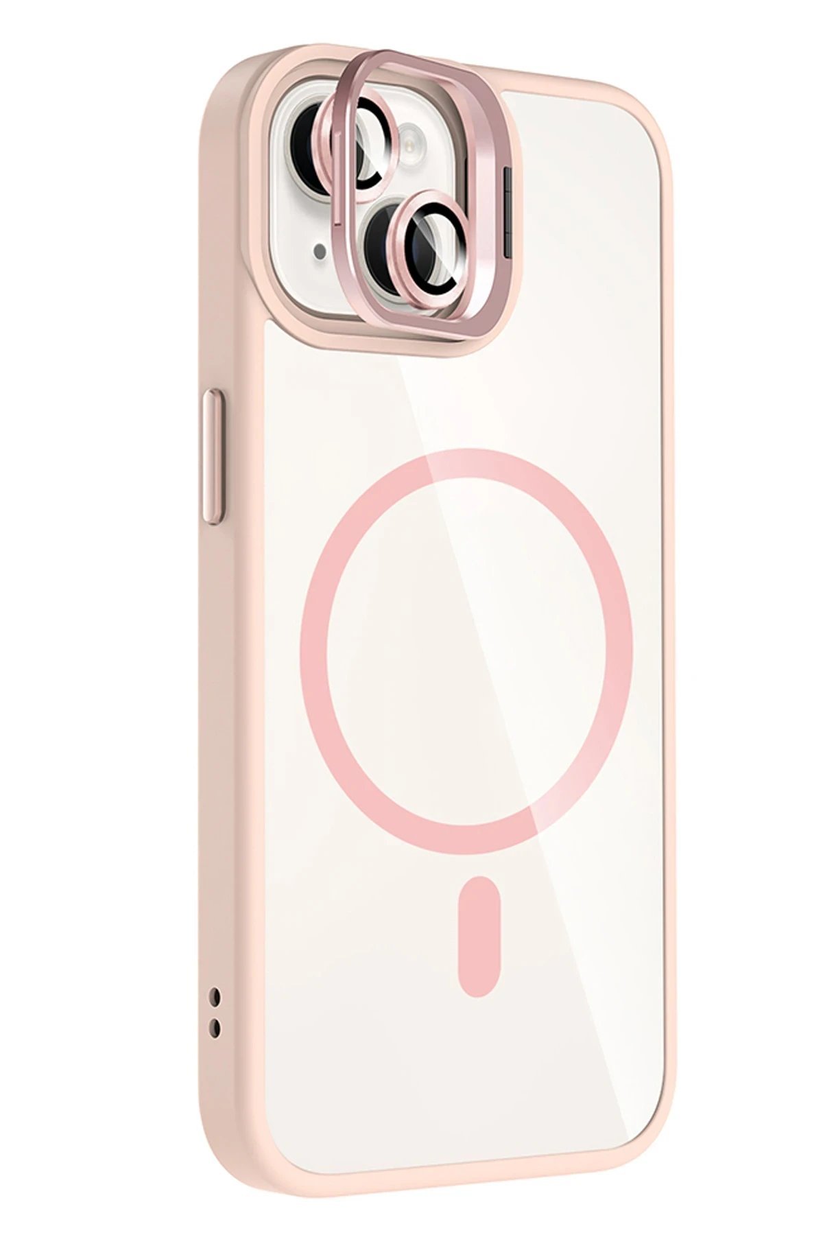 Apple iPhone 14 Remim Lensli Magsafe Standlı Kapak – Pembe-(5796)