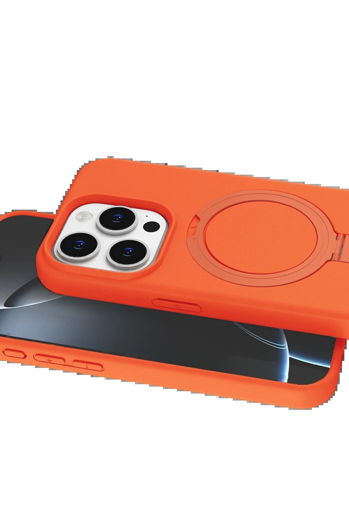 Apple iPhone 15 Pro Max Regal Magsafe Standlı Kapak – Turuncu-(5796)