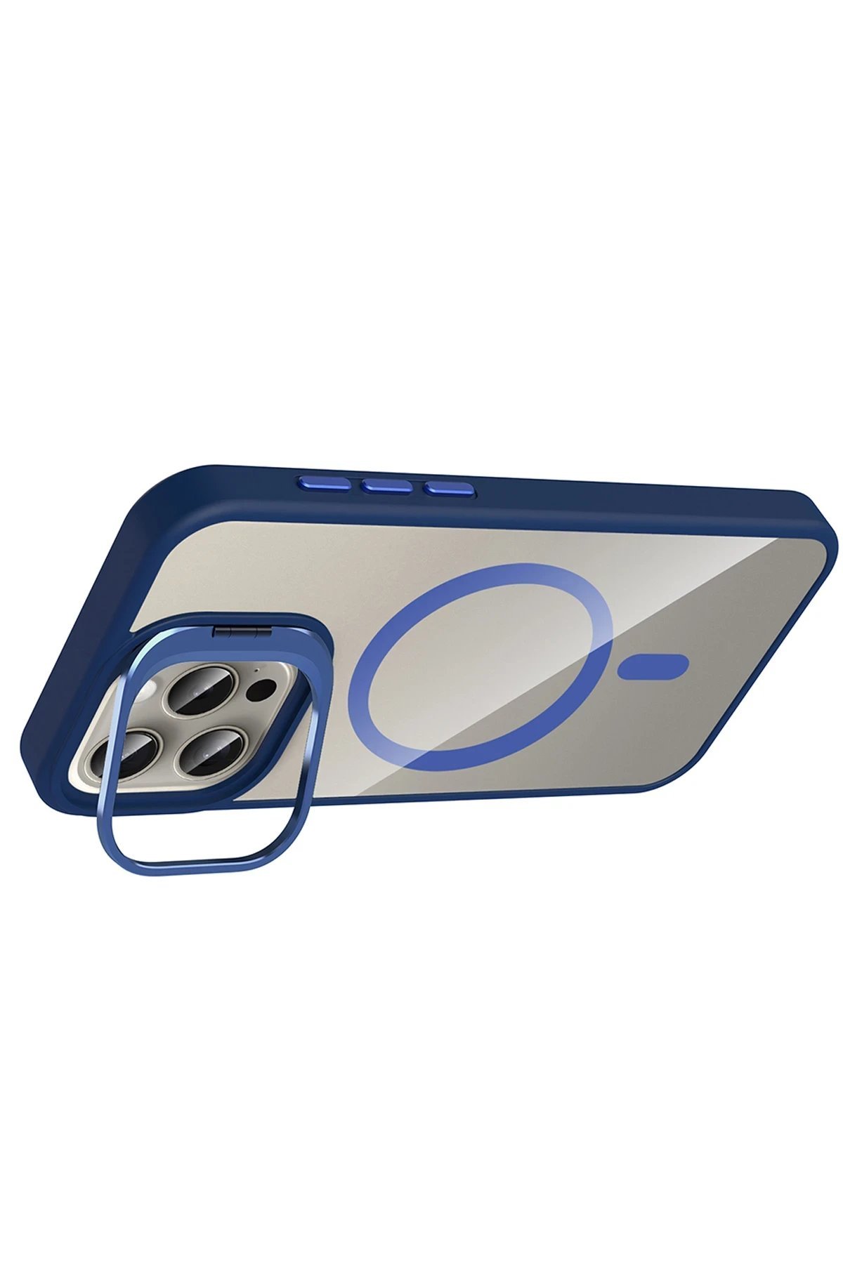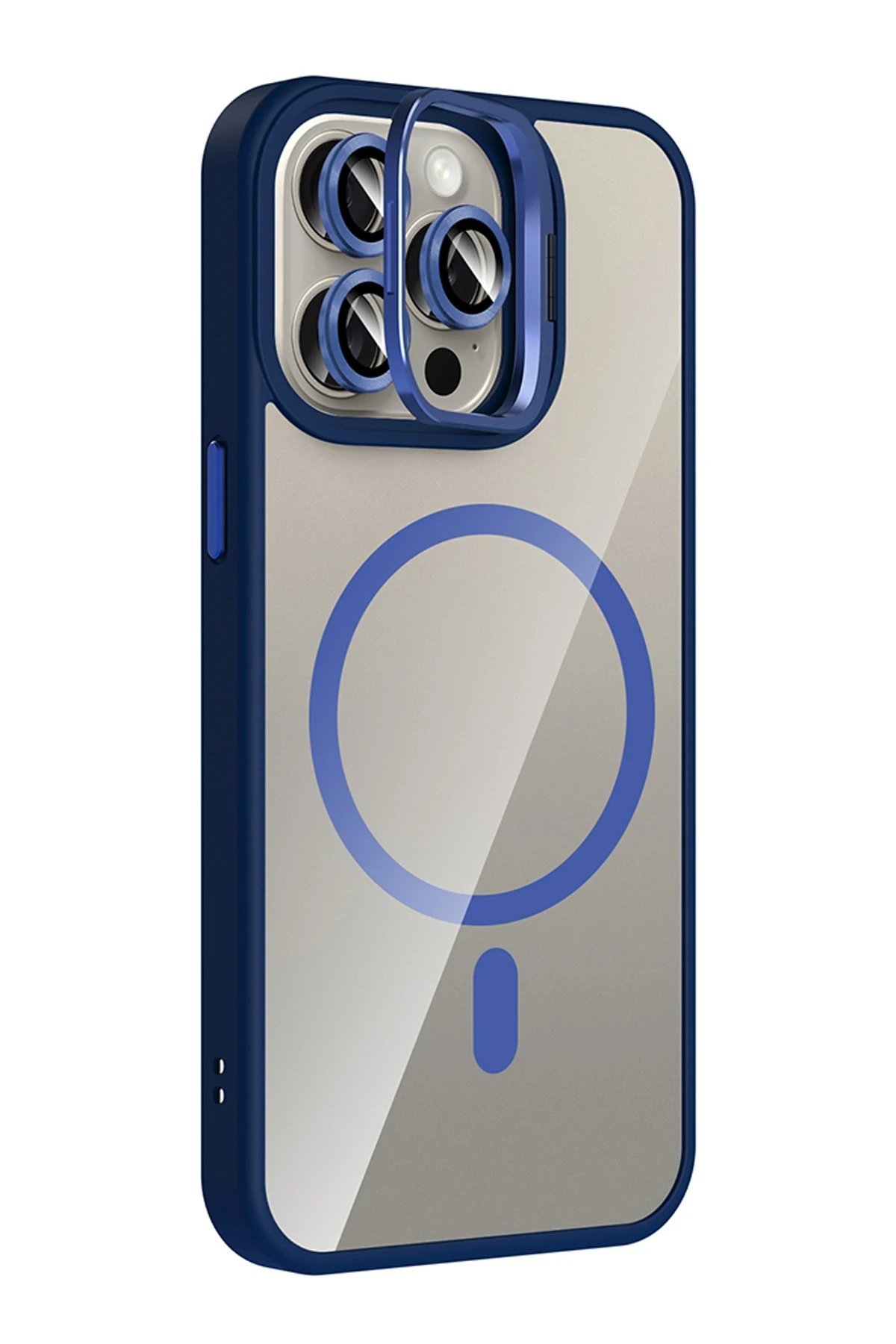 Apple iPhone 15 Pro Max Remim Lensli Magsafe Standlı Kapak – Lacivert-(5796)