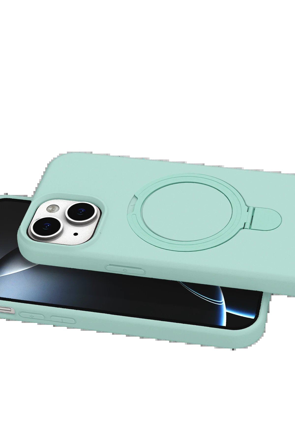 Apple iPhone 15 Regal Magsafe Standlı Kapak – Su Yeşili-(5796)