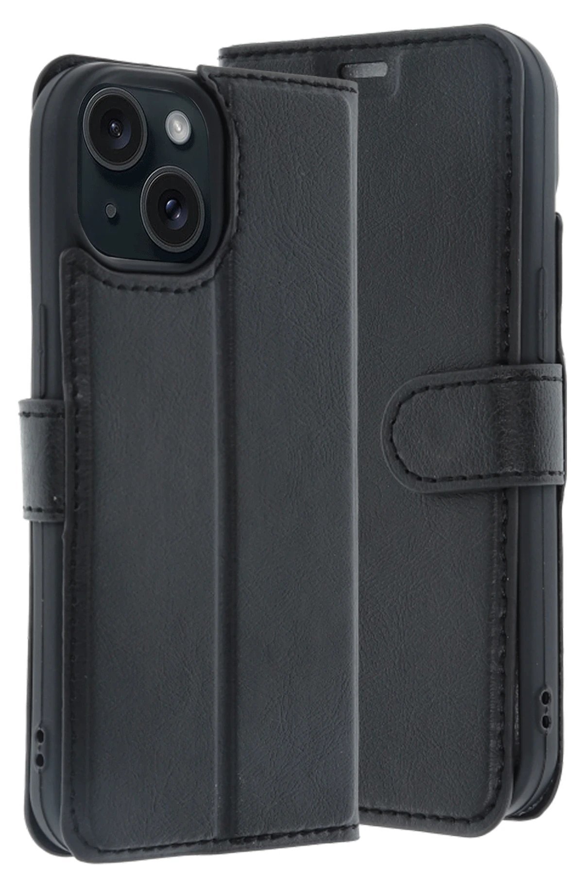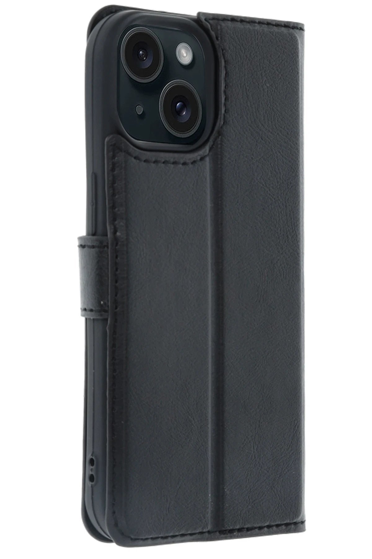 Apple iPhone 15 Trend S Plus Kapaklı Kılıf - Siyah-(5796)