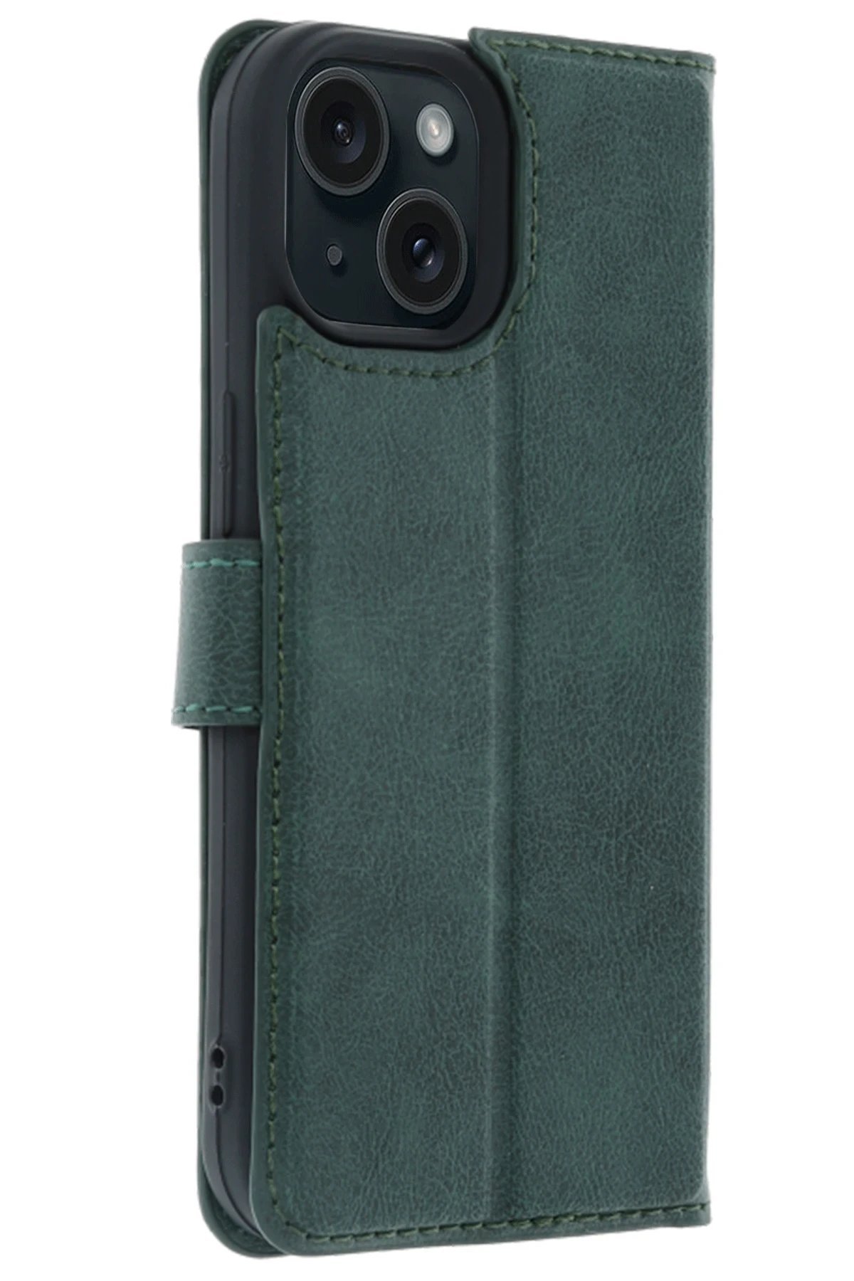 Apple iPhone 15 Trend S Plus Kapaklı Kılıf - Yeşil-(5796)