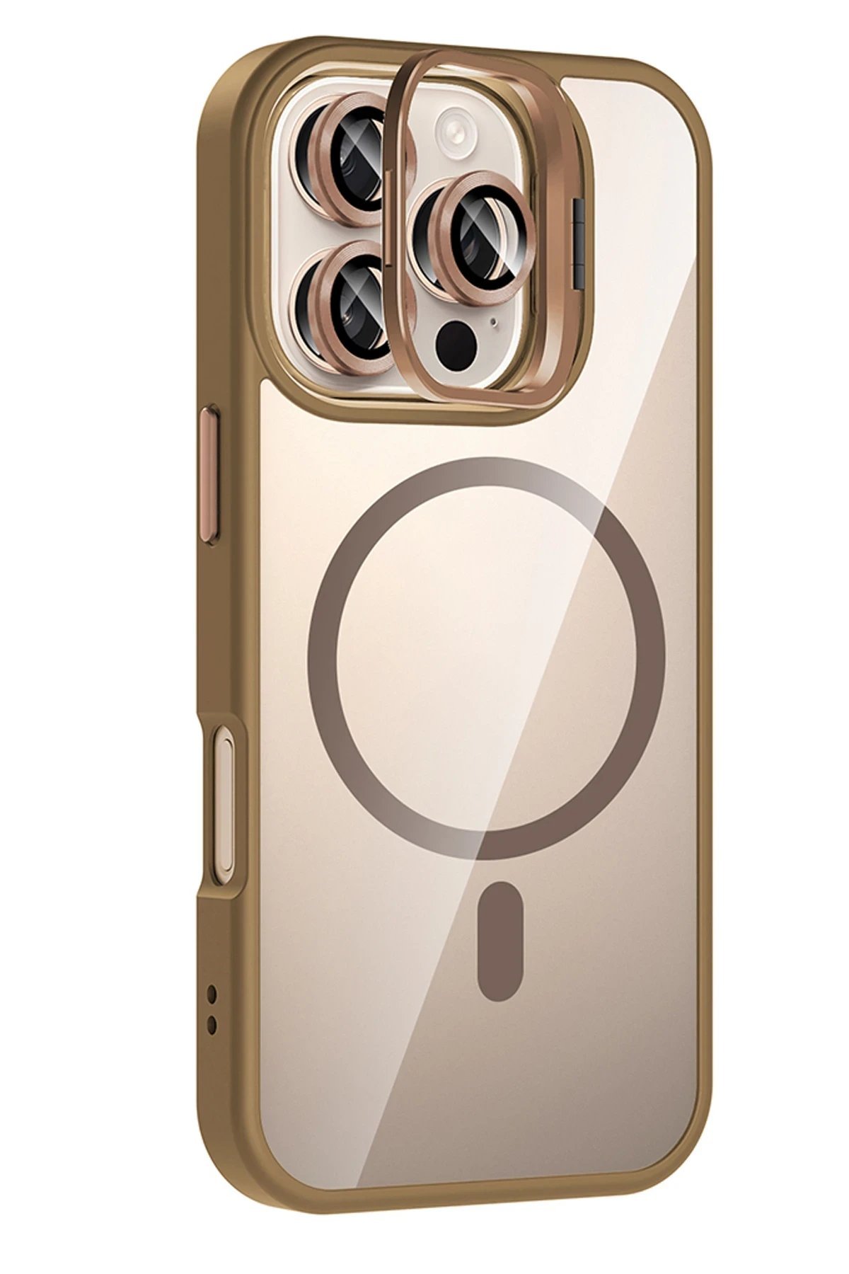 Apple iPhone 16 Pro Remim Lensli Magsafe Standlı Kapak – Kahverengi-(5796)