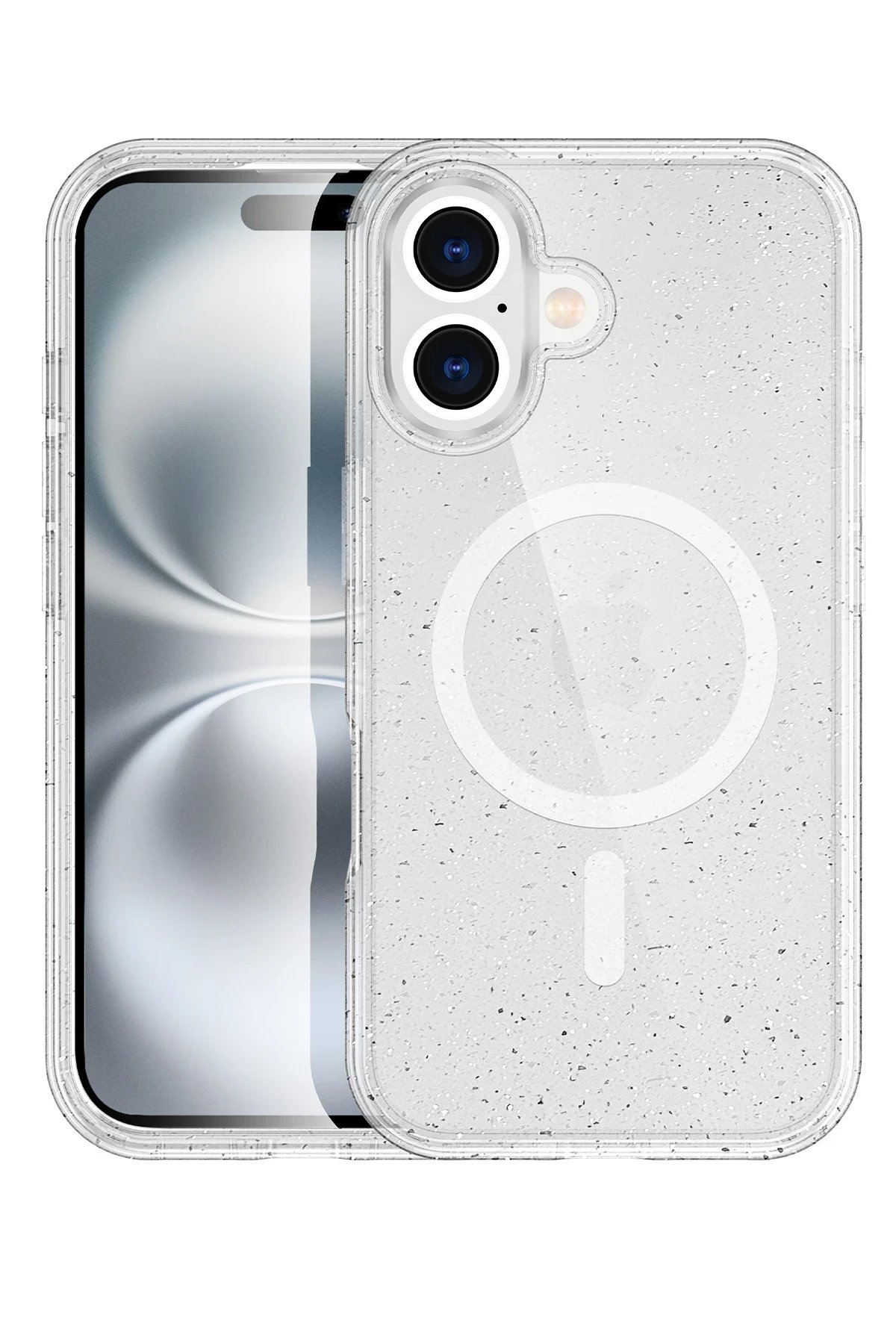 Glow MagSafe Kapak, telefonunuzu her açıdan öne çıkaran parlak ve şık bir tasarıma sahiptir. Simli arka planı, ışık altında parlayarak cihazınıza göz alıcı bir görünüm kazandırır.