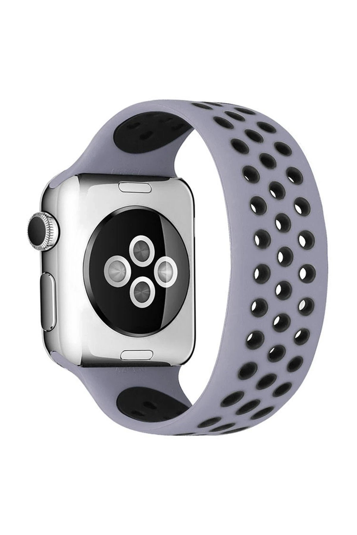 Apple Watch 38mm Ayarlı Delikli Silikon Kordon – Gri-Siyah-(5796)