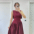 Arkası Kanatlı Uzun Elbise- Bordo