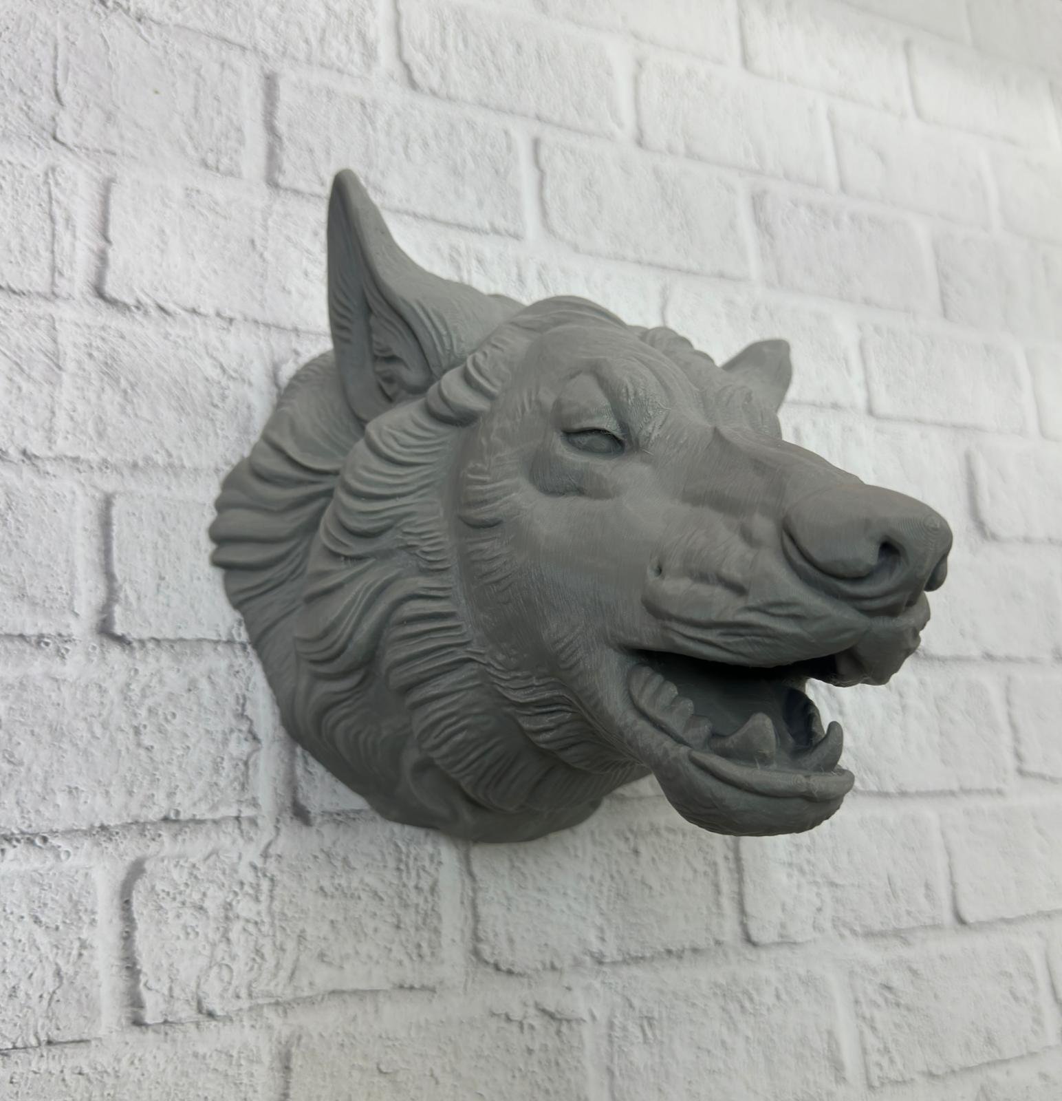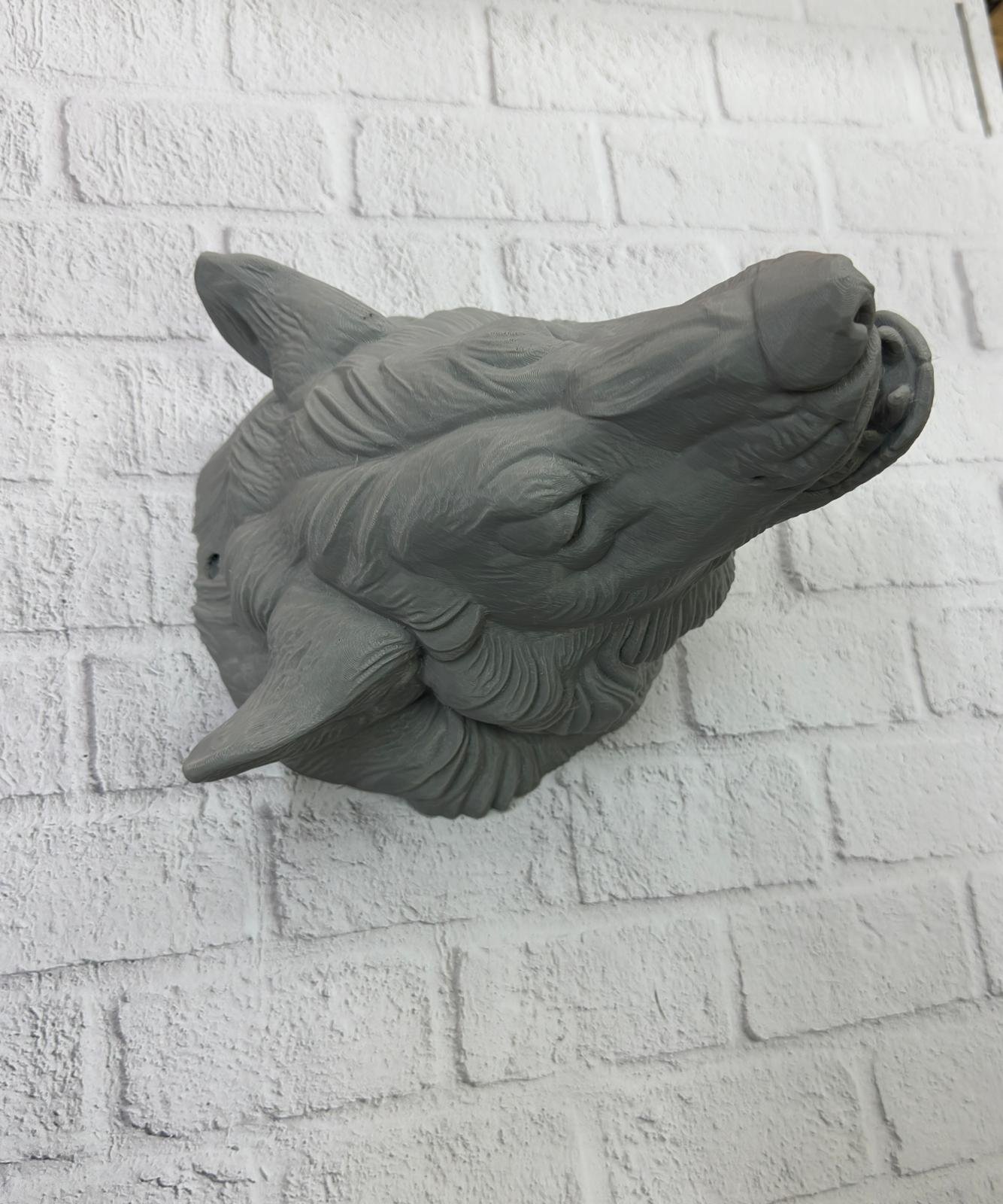 Asılabilir Gri Kurt Heykeli Ev Ofis Duvar Süslemesi Dekoratif
