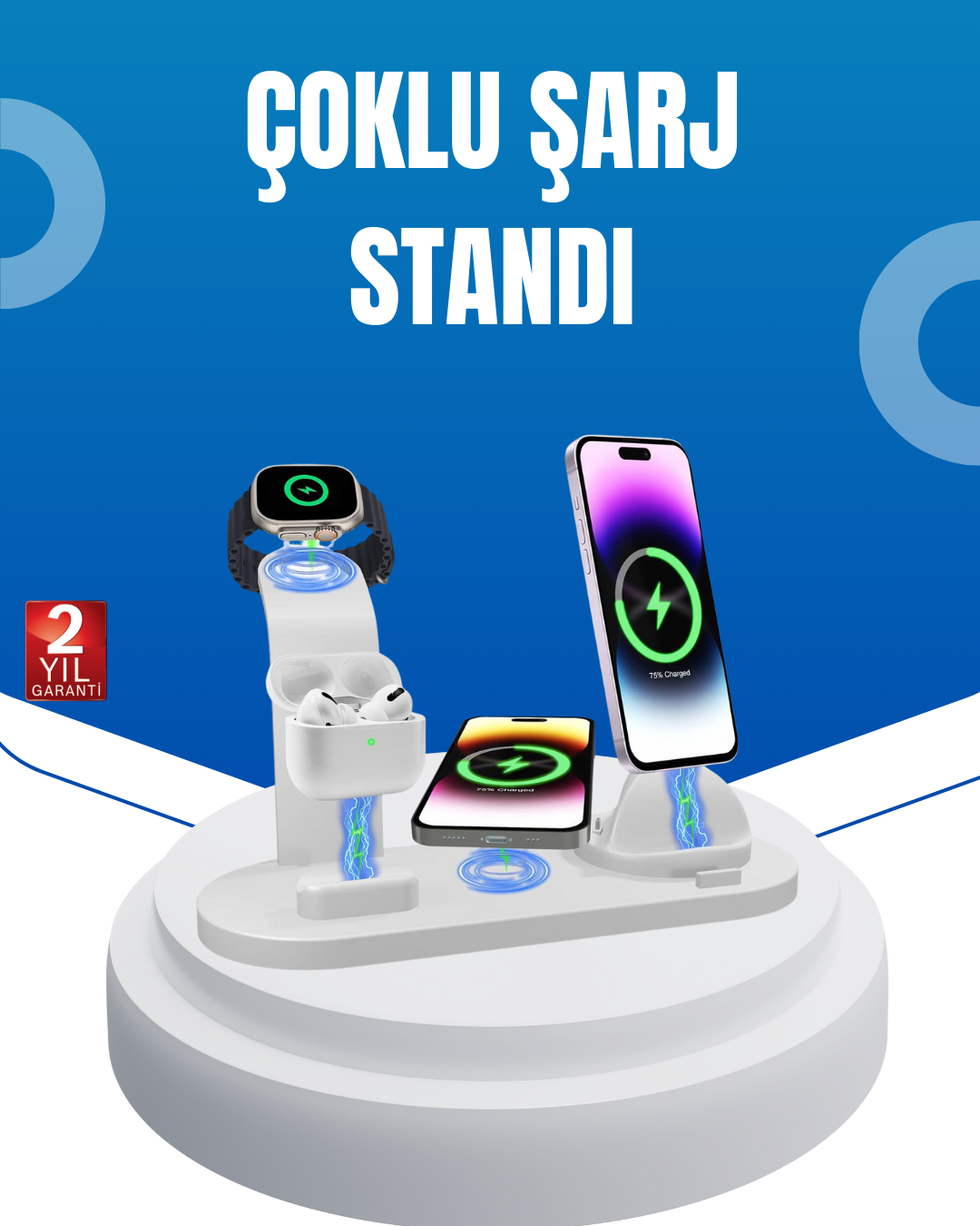 Kablo karmaşasına son veren bu 4’ü 1 arada şarj standı, aynı anda telefon, akıllı saat ve kulaklıklarınızı şarj edebilme özelliğine sahiptir. 15W hızlı şarj gücü, cihazlarınıza hızlı enerji sağlar. Güvenlik sistemleriyle donatılmış olup aşırı şarj ve aşırı ısınmayı önler. Şık ve modern tasarımı, masaüstünüze düzenli bir görünüm kazandırır. Evde, iş yerinde veya seyahatlerde rahatlıkla kullanılabilir. Dayanıklı malzemeleri sayesinde uzun süreli kullanım için idealdir.