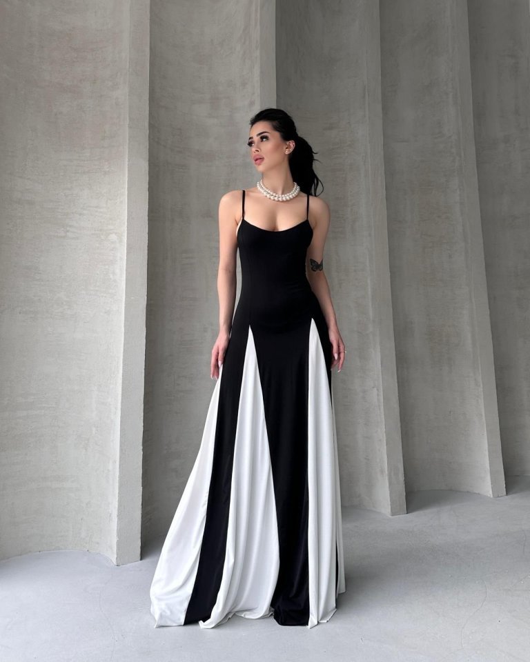 Askılı Beyaz Detaylı Maxı Kadın Elbise