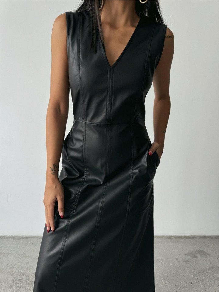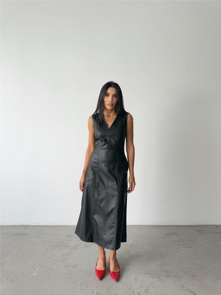 ASKILI DERİ ELBİSE ŞANEL BOY – Siyah