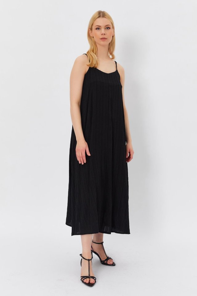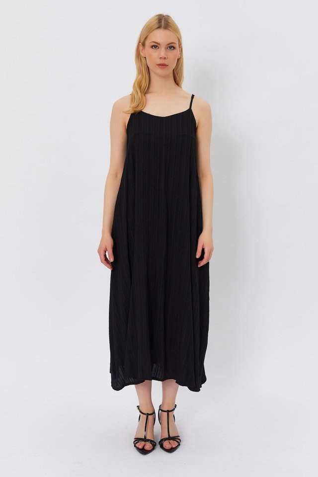 Askılı Uzun Çan Elbise – Siyah