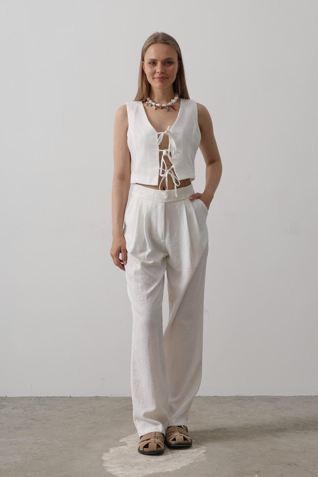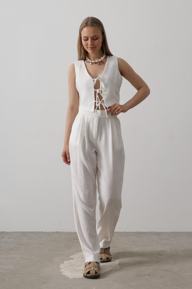 Bağlamalı Yelek – Beyaz