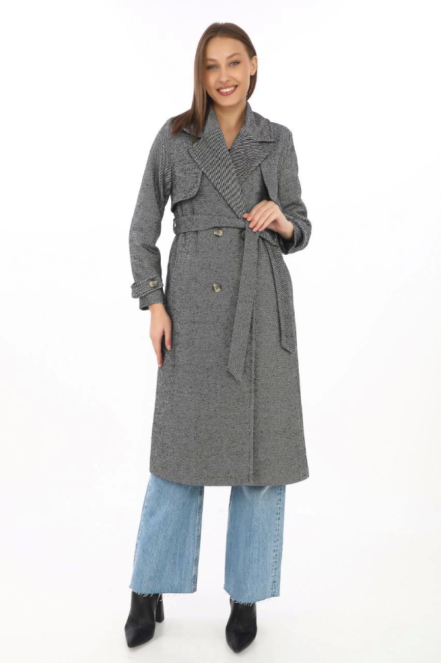 Balık Sırtı Kaşmir Uzun Kaşe Kaban – Boyalı Gri