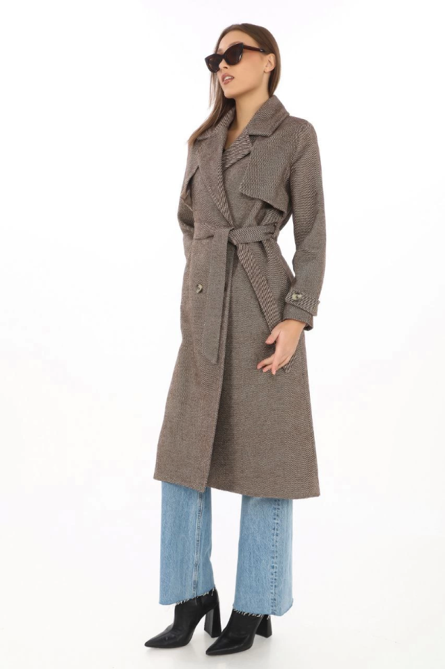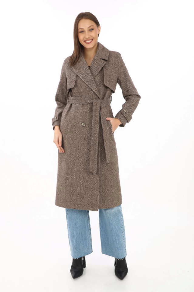 Balık Sırtı Kaşmir Uzun Kaşe Kaban – Vizon