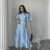 Bebe Mavi Kat Kat Balon Kollu Kemerli Elbise