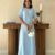 Bebe Mavi Pileli Bisiklet Yaka Elbise
