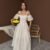 Bej Omuzu Bağcıklı Balon Kollu Brode Elbise