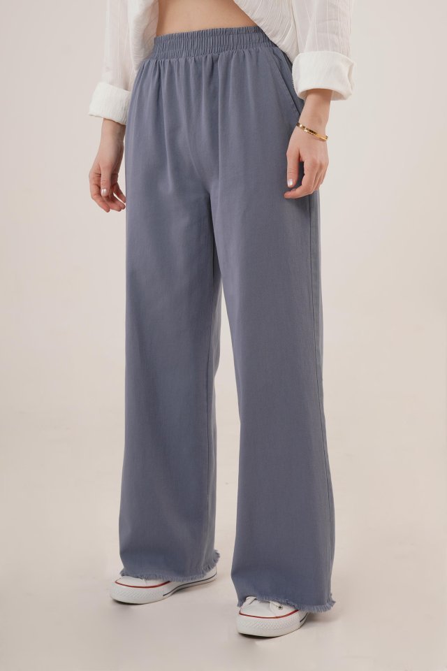 Bel Lastikli Paça Detaylı Cepli İndigo Pantolon