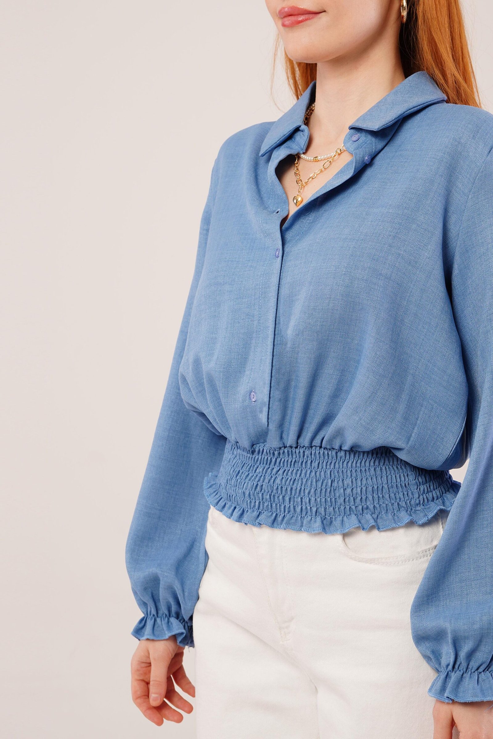Bel Ve Bilek Lastikli Mavi Bluz