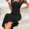 Beyaz Nakışlı İşlemeli Elbise