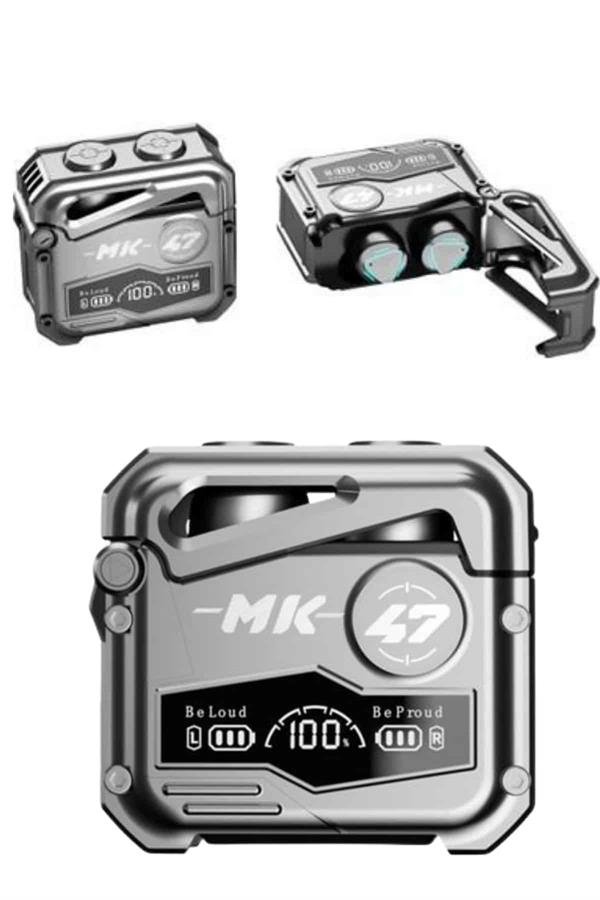 Gerçek Kablosuz ÖzgürlükMK47 Bluetooth kulaklık, dokunmatik kontrol özelliği ile kullanımı son derece kolay hale getirir. Cep telefonu oyuncuları için özel olarak optimize edilen bu kulaklık, ultra düşük gecikme süresiyle oyun deneyiminizi zirveye taşır. Kulaklıkları şarj kutusundan çıkardığınız anda otomatik olarak telefonunuzla eşleşir, böylece hiçbir anı kaçırmazsınız.Kristal Netliğinde 3D Ses ve Aktif Gürültü EngellemeTaşınabilir medya oynatıcı, mobil cihaz veya oyun konsolu ile uyumlu olan MK47, güçlü 3D ses teknolojisiyle sizi oyunun ya da müziğin tam ortasına taşır. Aktif gürültü iptali özelliği sayesinde dış ortam seslerini izole eder. Farklı boyutlarda sunulan kulak tıkaçları sayesinde kulaklığınız sabit kalır ve konforlu bir kullanım sunar – ister spor yapın ister günlük yürüyüşlerinizde kullanın.Güçlü Pil Performansı ve IPX5 Su DirenciKulaklıklar tek bir şarjla 4-5 saat kesintisiz kullanım sunar. 400mAh kapasiteli şarj kutusu ise kulaklıklarınızı birkaç kez yeniden şarj edebilir. Type-C şarj portu sayesinde hızlı ve pratik şekilde şarj olur. IPX5 su geçirmezlik derecesi ile yağmura ve tere karşı dayanıklıdır – dış mekan kullanımı için ideal bir seçenektir.