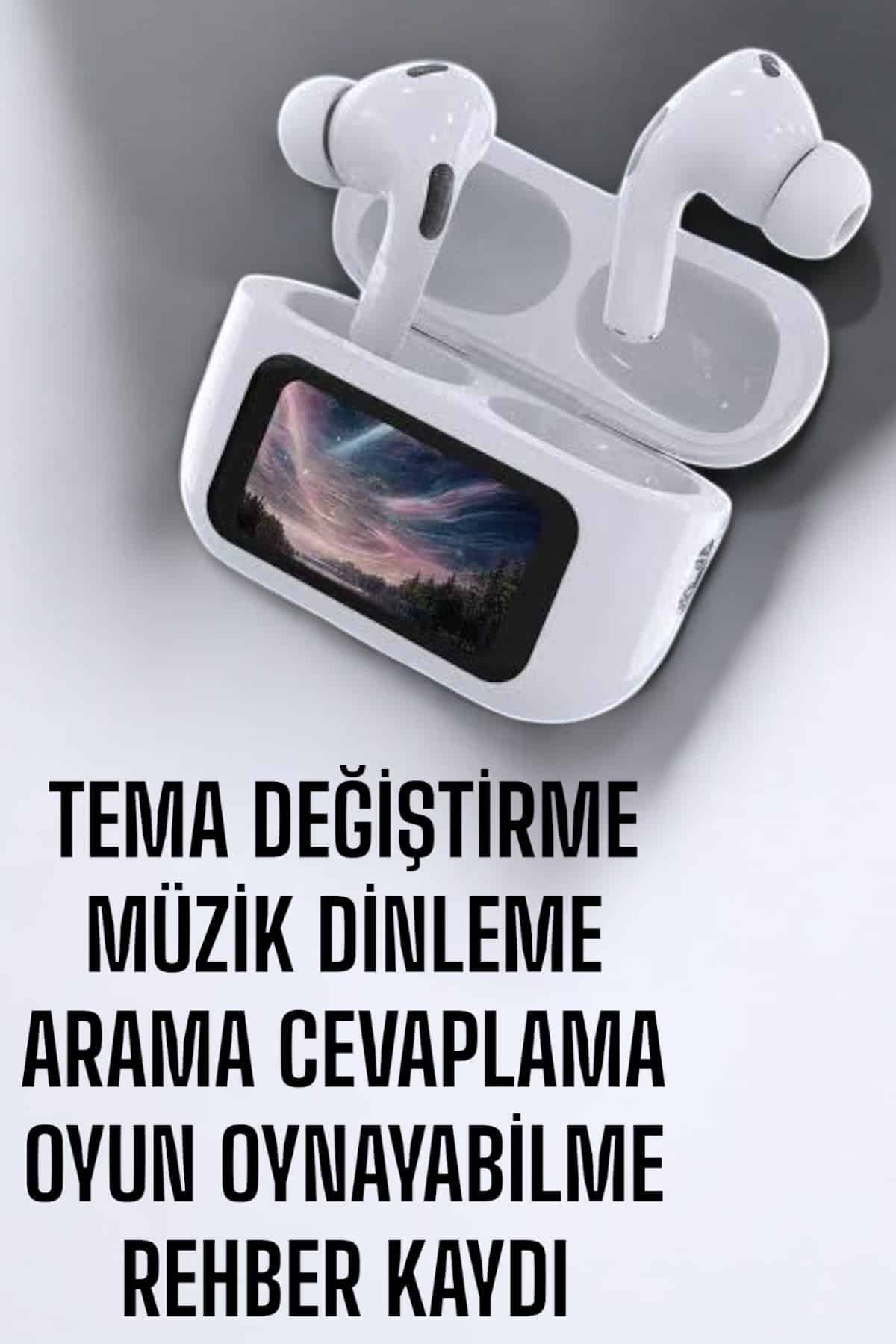 Yepyeni tasarımı, güçlü bataryası ve gelişmiş özellikleriyle bu dokunmatik ekranlı Bluetooth kulaklık, her türlü ihtiyacı karşılayacak şekilde tasarlandı. Güçlü ses ve bass performansı ile müzik deneyiminizi bir üst seviyeye taşırken, aktif gürültü önleme (ANC) özelliği sayesinde dış dünya ile bağlantınızı keserek müziğinize odaklanmanızı sağlar. Kulaklık, suya ve tere karşı dayanıklı yapısı sayesinde spor yaparken veya yağmurlu havalarda kesintisiz bir müzik keyfi sunar.Otomatik pop-up ve pop-up ekranı özellikleri, cihazınızı takar takmaz hızlı bir şekilde bağlanmanızı sağlar. Tüm akıllı telefonlarla uyumlu olan bu kulaklık, otomatik bağlantı özelliğiyle bir kez bağlandığında, bir sonraki kullanımınızda otomatik olarak eşleşir. Ayrıca, kulakiçi sensörler sayesinde kulaklıklarınızı çıkardığınızda müzik otomatik olarak durur, tekrar taktığınızda ise kaldığınız yerden devam eder.Hi Siri özelliği sayesinde kulaklıklarınızla sesli komutlarla işlem yapabilir, müzik paylaşma özelliği ile arkadaşlarınızla müzik dinlemeyi daha keyifli hale getirebilirsiniz. Ayrıca, konum bulma ve arka plan seslerini yönetme gibi özellikler de günlük kullanımda büyük kolaylık sağlar. Kulaklık kutusu, aynı zamanda powerbank olarak kullanılabilir, böylece müzik dinlerken veya telefonunuzu şarj ederken kesintisiz kullanım deneyimi yaşarsınız.