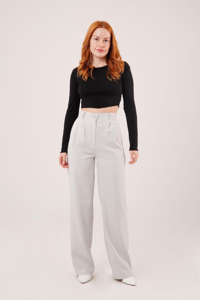 Bol Paça Piliseli Gri Pantolon
