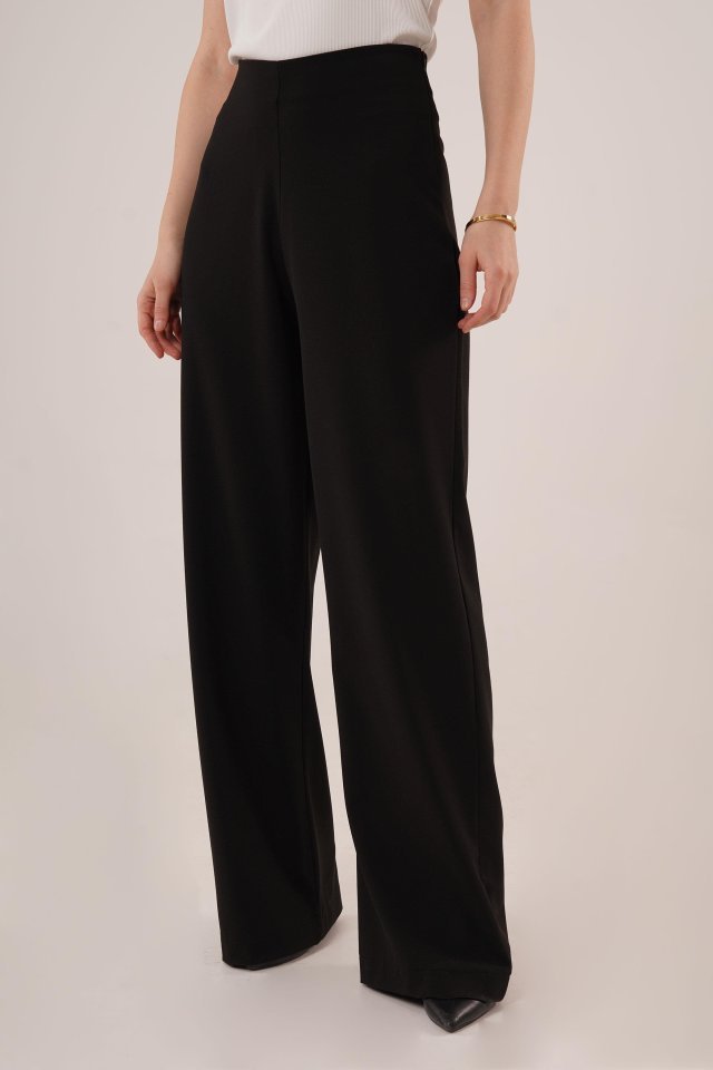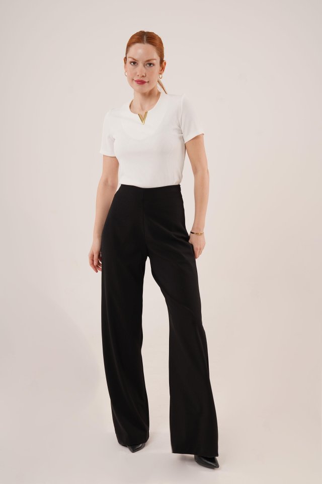 Bol Paça Yandan Fermuarlı Siyah Kumaş Pantolon