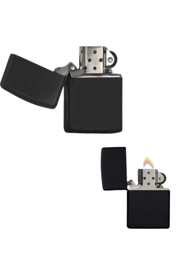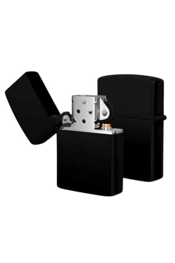 Çakmak Parlak Siyah Zippo Benzinli Çakmak Cep Boy Doldurulabilir