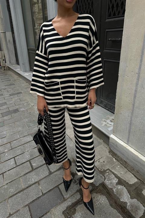 Candy Çizgili Straight Fit Pantolon Takım 9705-015