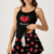 Çilek Baskılı Siyah Askılı Şortlu Pijama Takımı